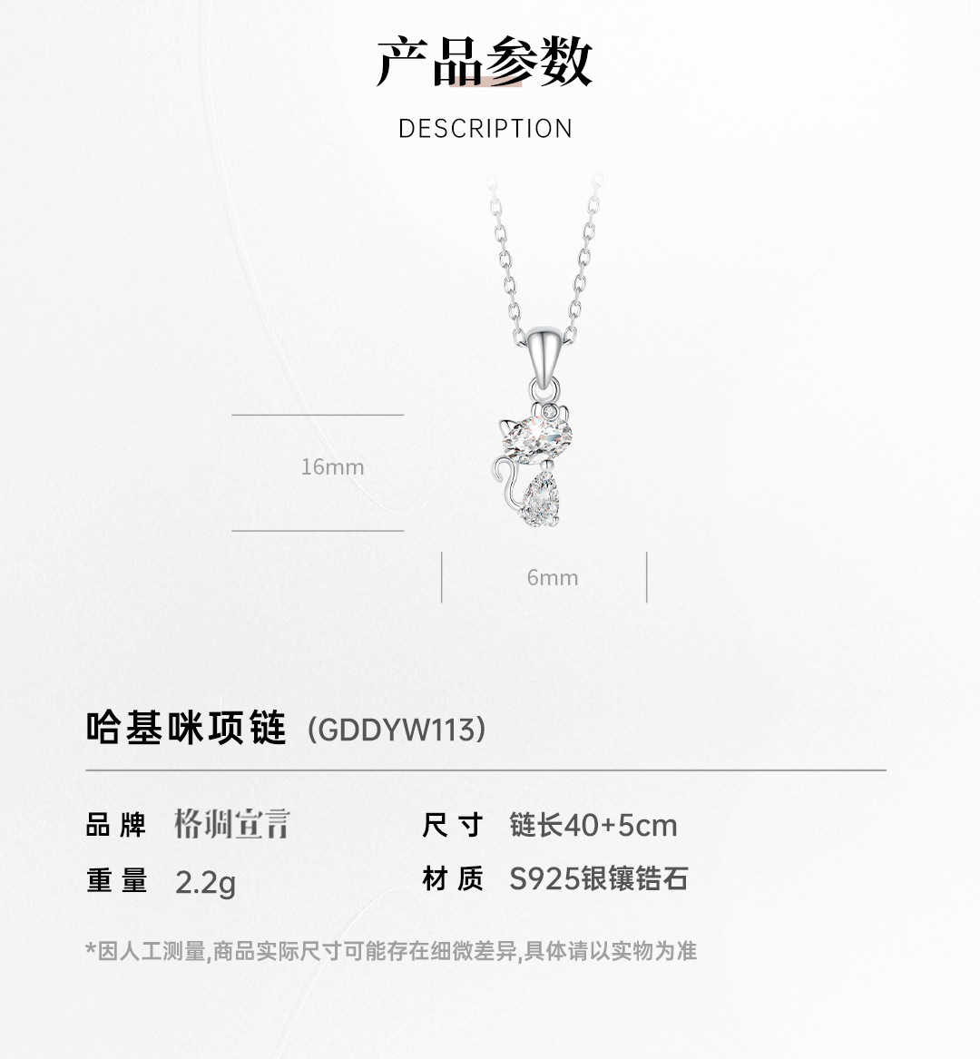 格調宣言哈基咪項鏈女可愛萌系氣質高級感首飾送女友生日禮物純銀
