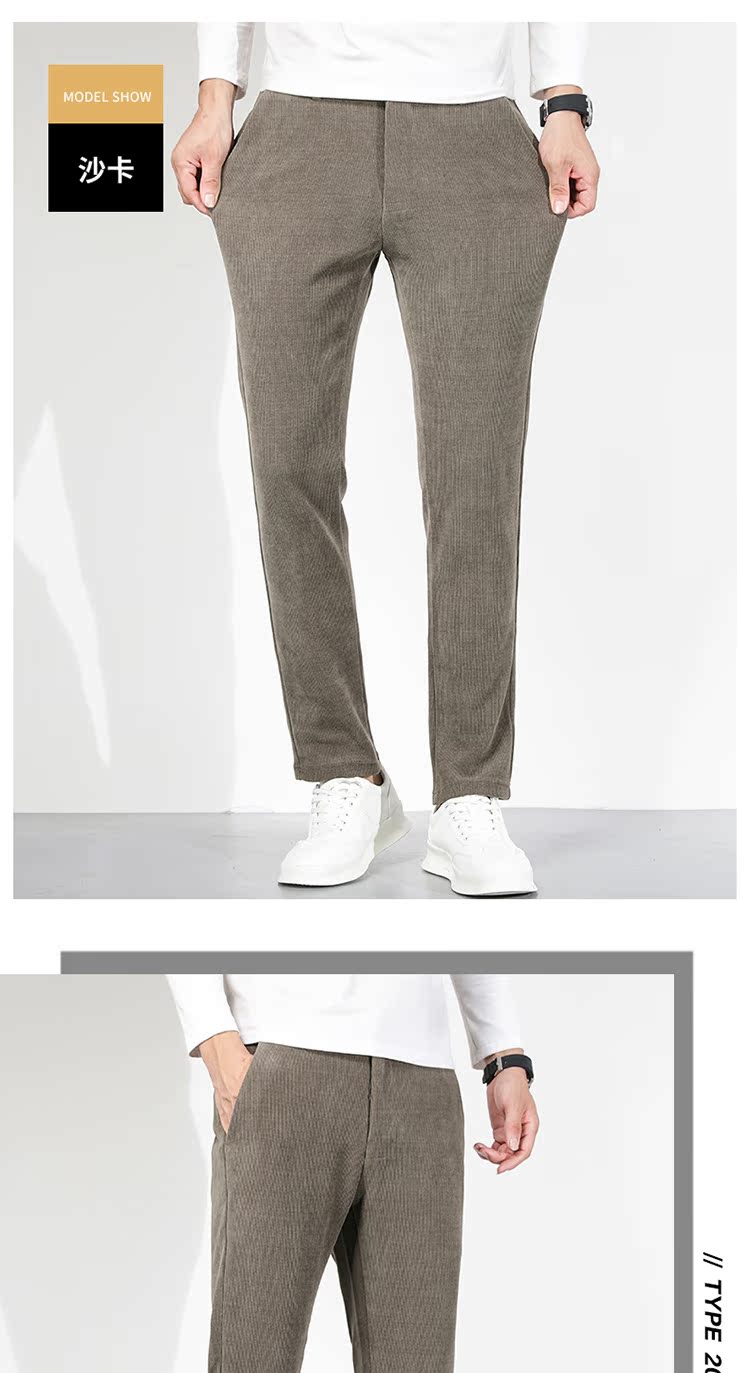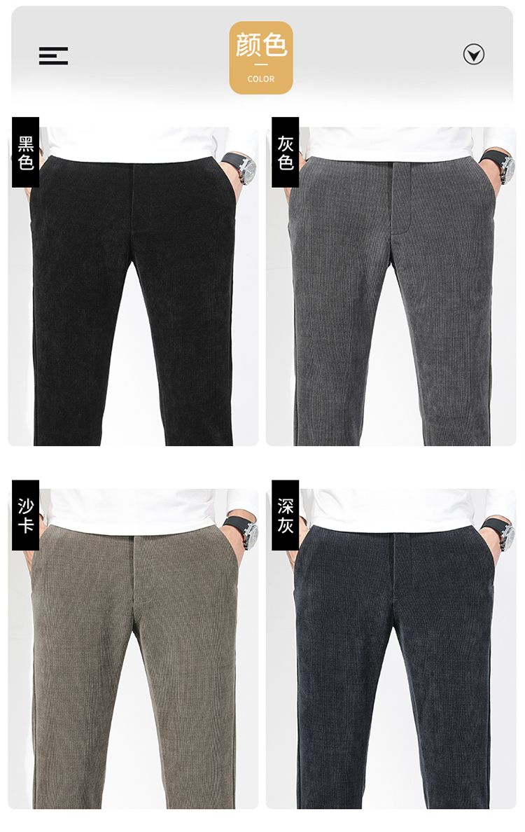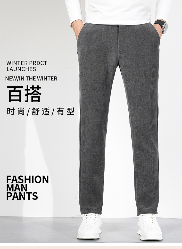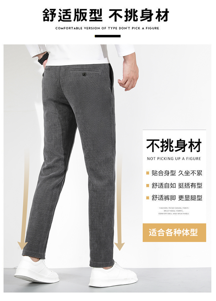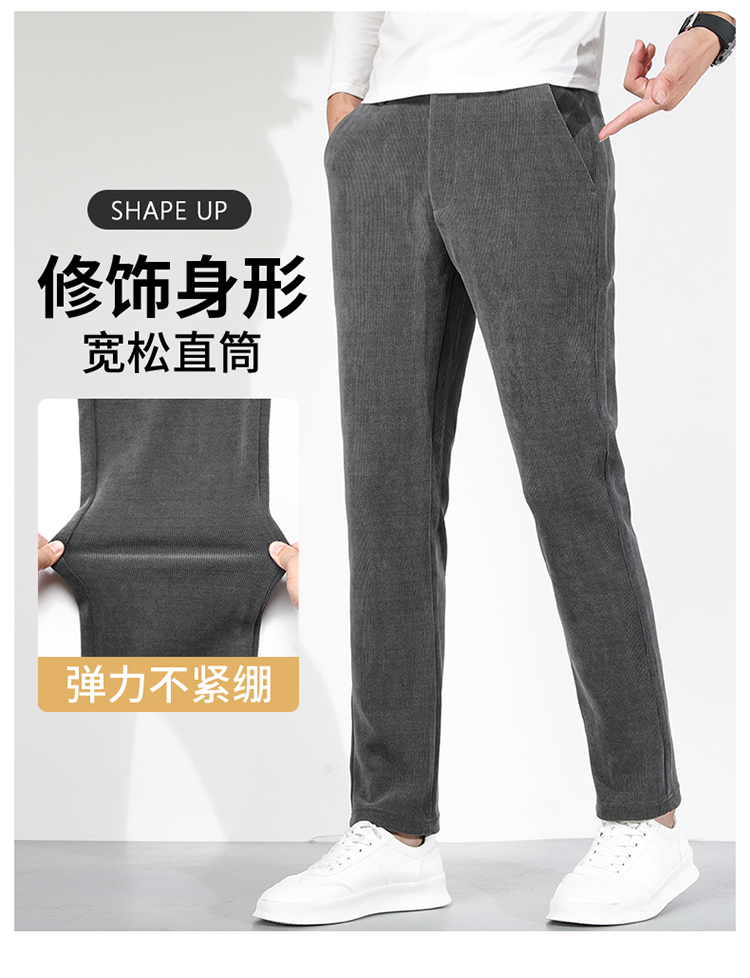 條絨褲男2023秋冬厚款彈力休閑褲高腰深檔直筒彈力免燙燈芯絨男褲