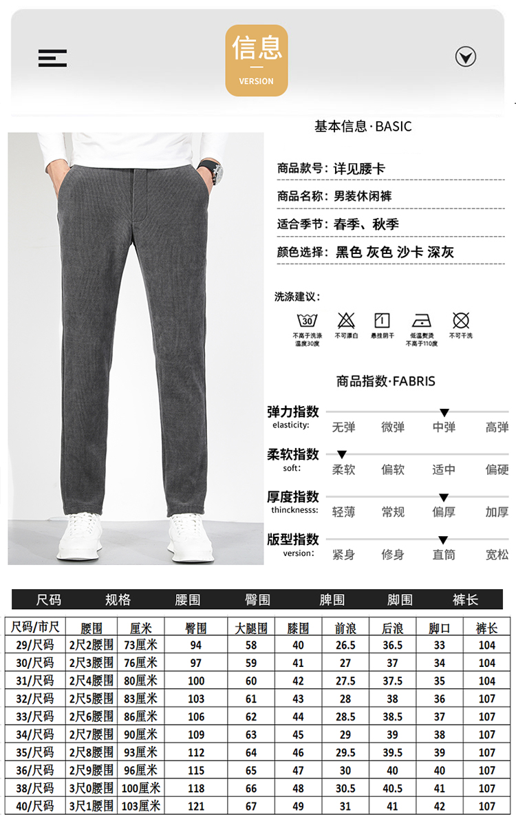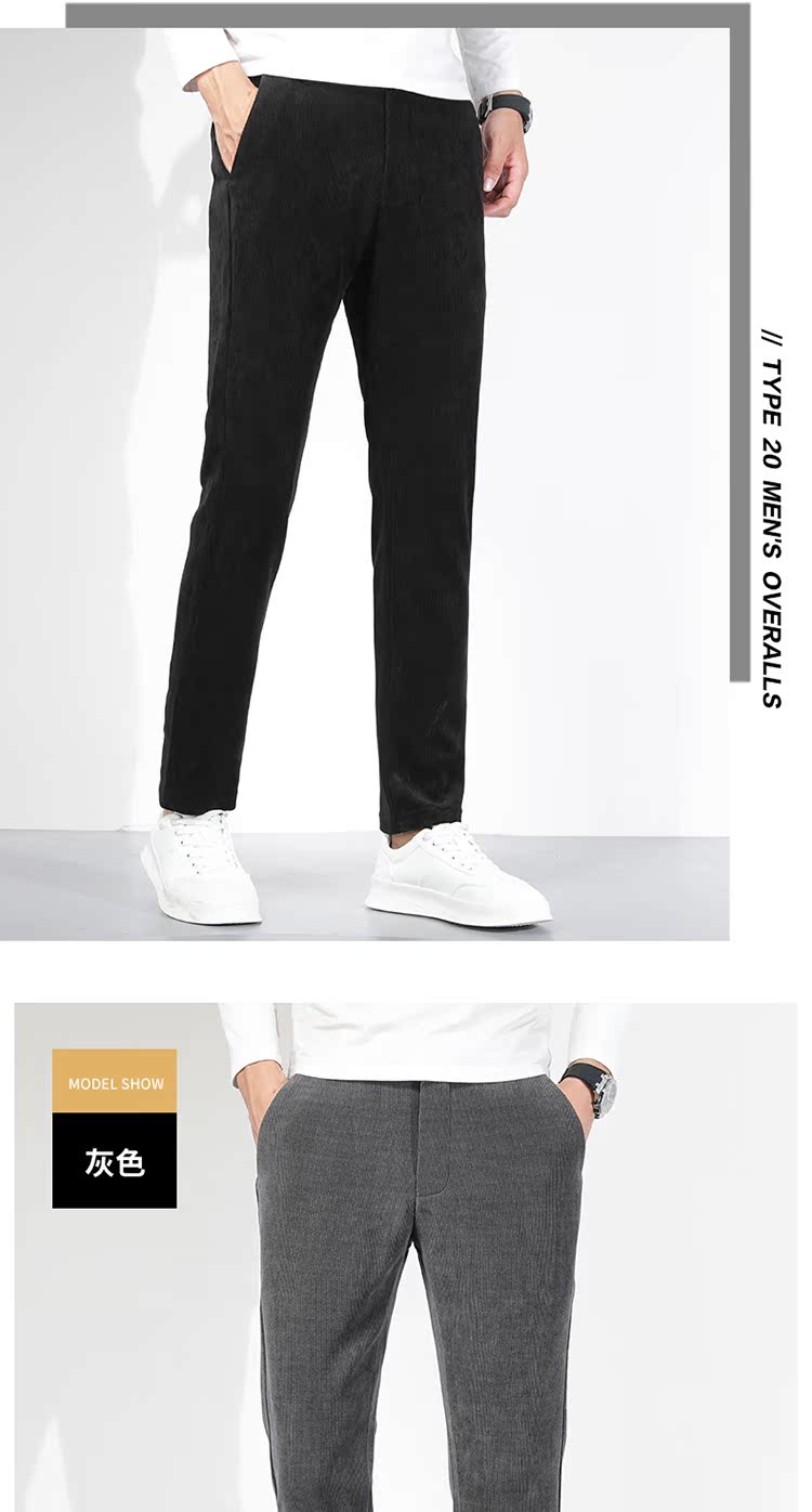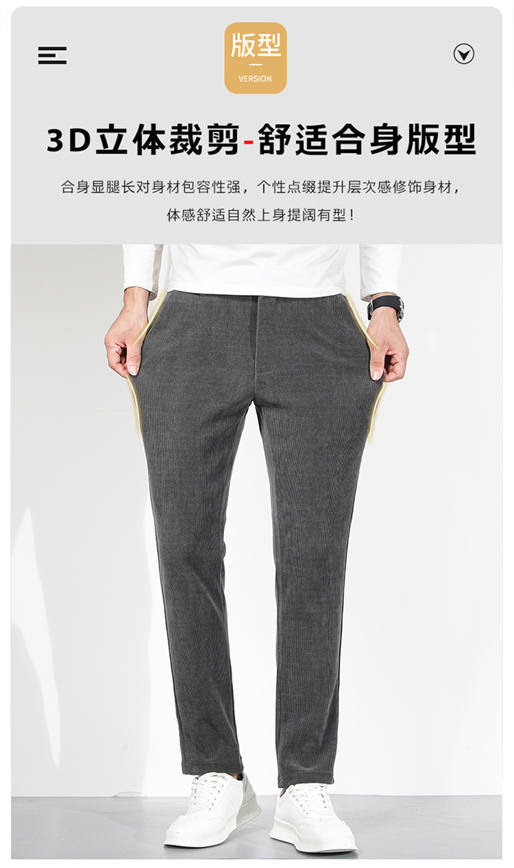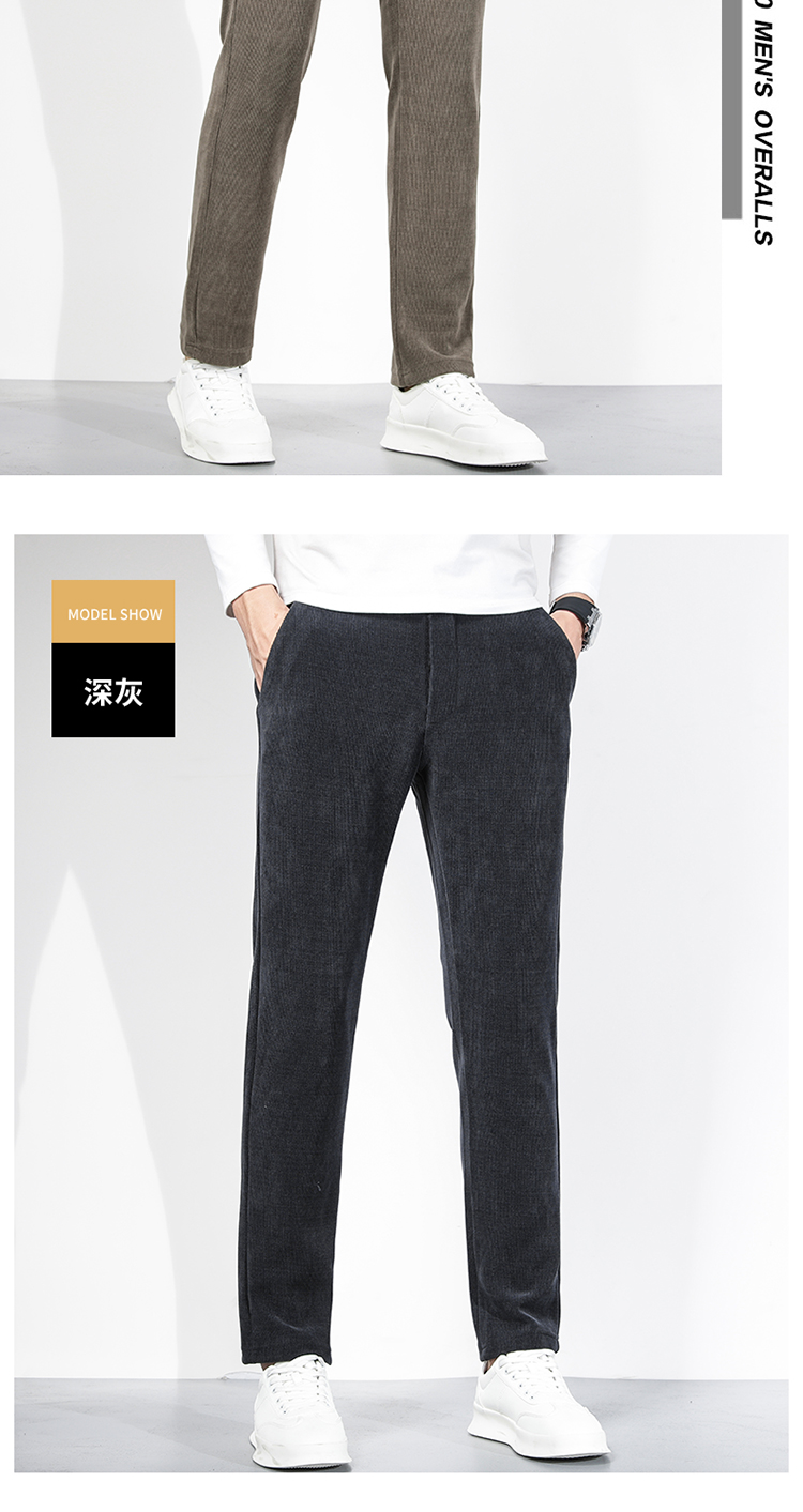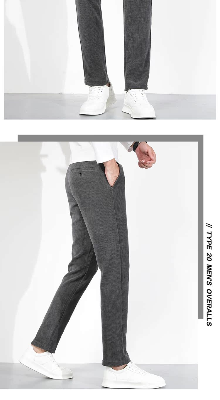 條絨褲男2023秋冬厚款彈力休閑褲高腰深檔直筒彈力免燙燈芯絨男褲