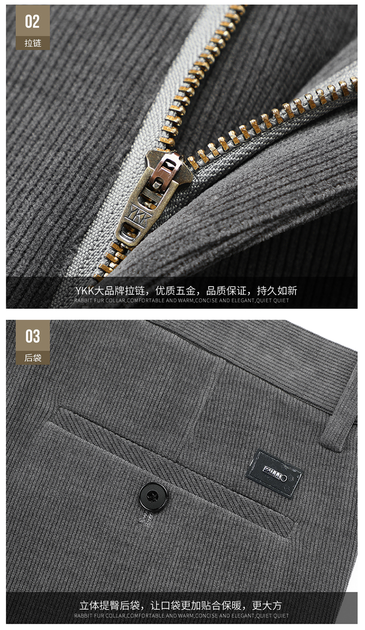 高端條絨休閑褲中年男士秋冬商務高腰直筒大碼燈芯絨免燙加絨男褲