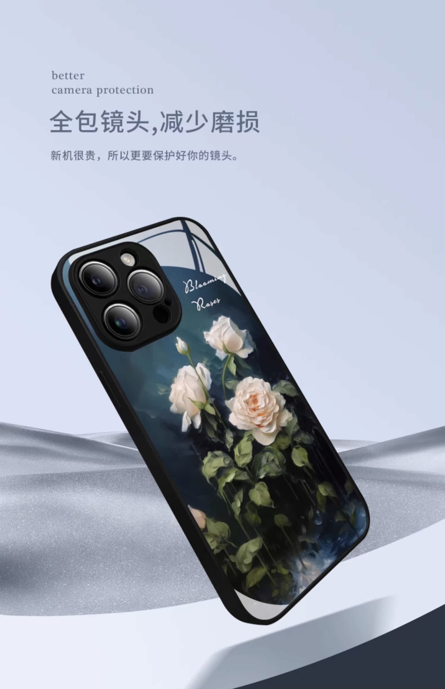 桔子貓適用于蘋果15promax創意油畫玫瑰手機殼14小眾手機殼12pro玻璃殼華為p60手機殼小米13手機殼榮耀手機殼