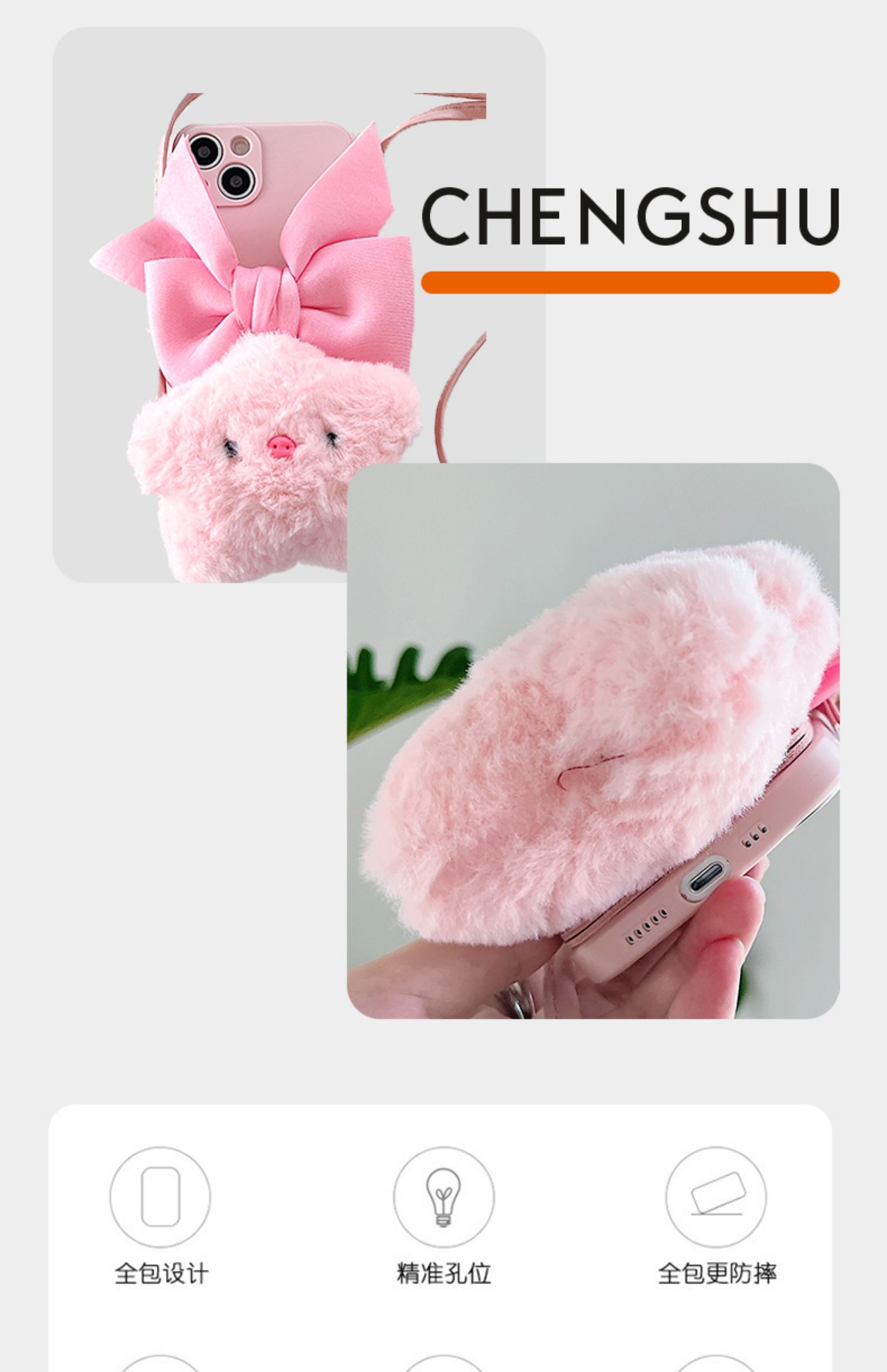 橙樹原創蘋果12手機殼斜挎卡包粉色適用iphone14帶掛繩可調節13pro插卡背帶11網紅毛絨星星豬xsm蝴蝶結少女感