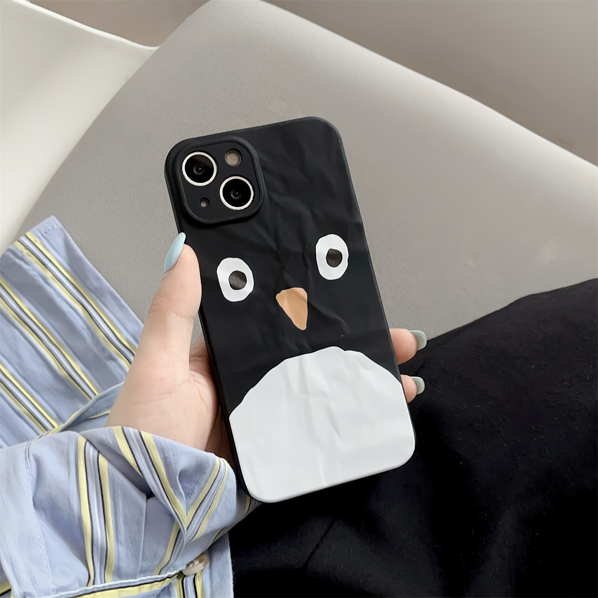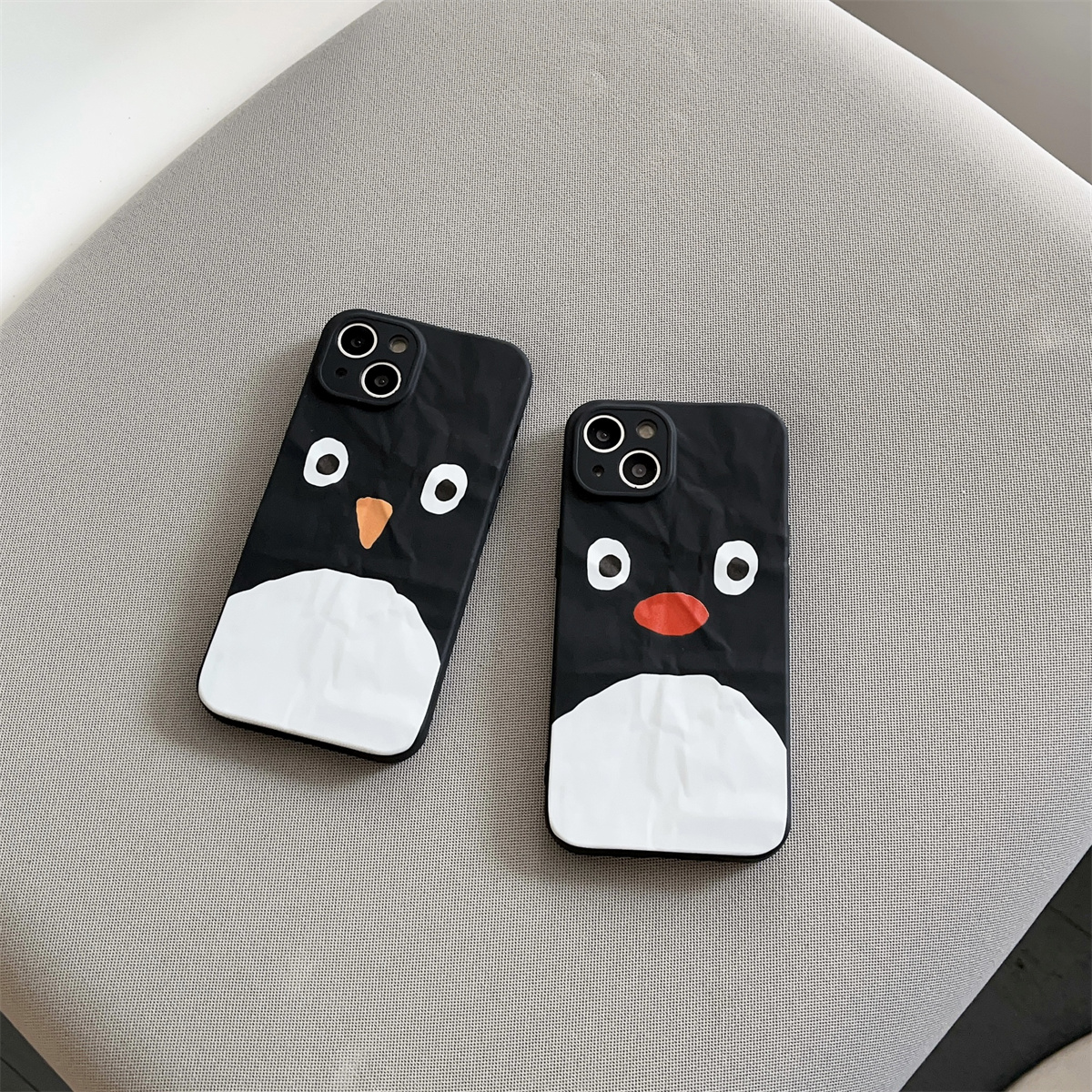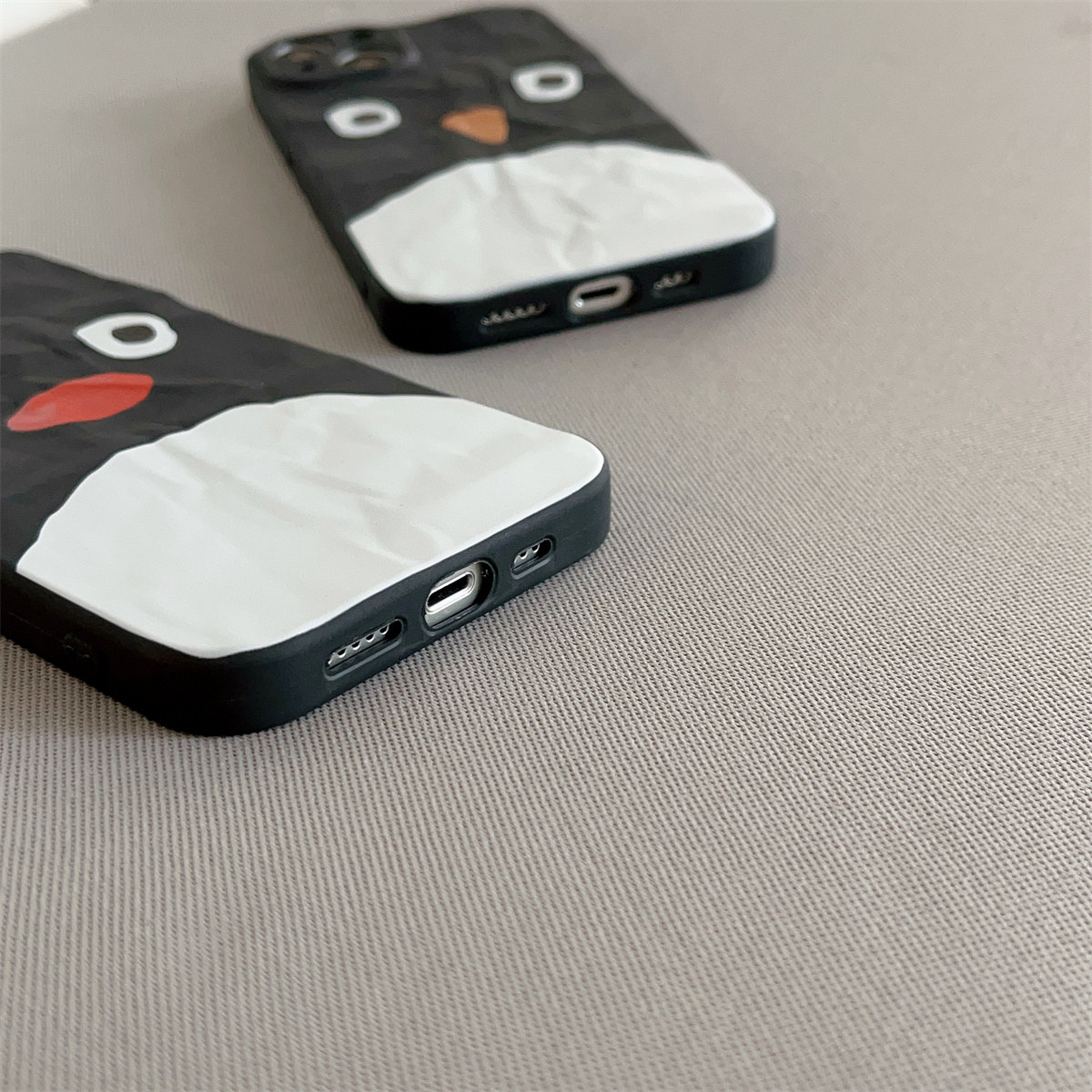 適用立體皺褶暗黑色企鵝蘋果14手機殼iphone12女13男14promax新款大孔鏡頭por防摔十一保護套高級感可愛個性