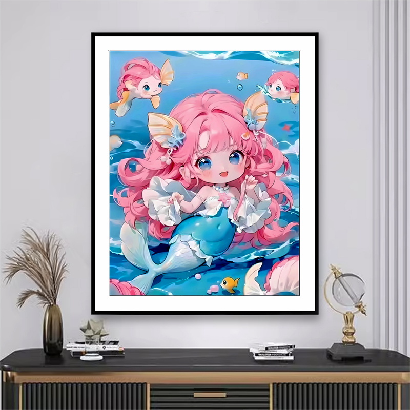人魚公主十字繡2023年新款線繡客廳海底世界小件玄關臥室手工刺繡