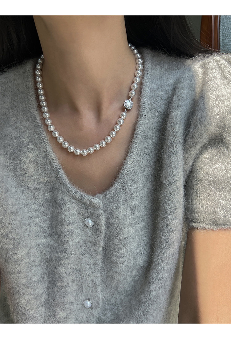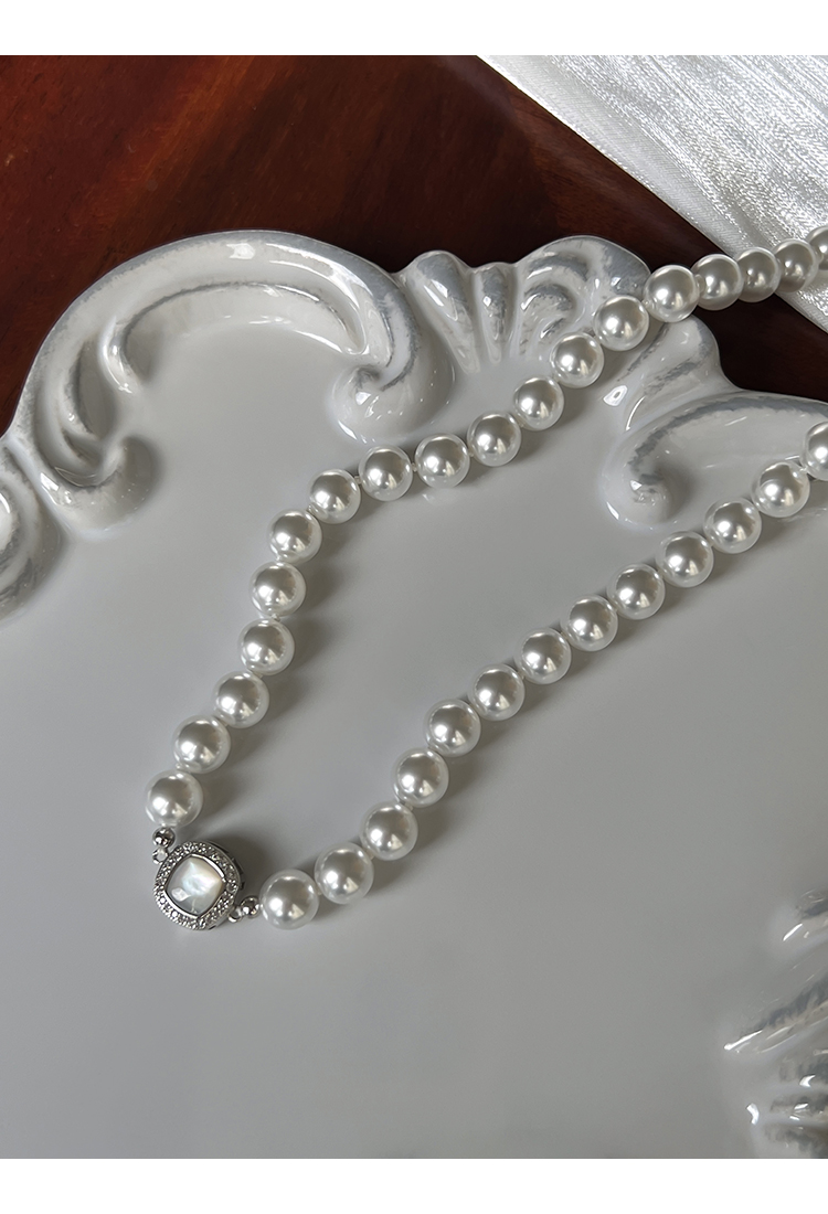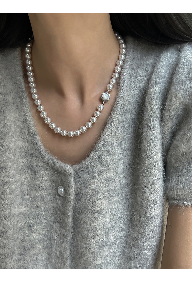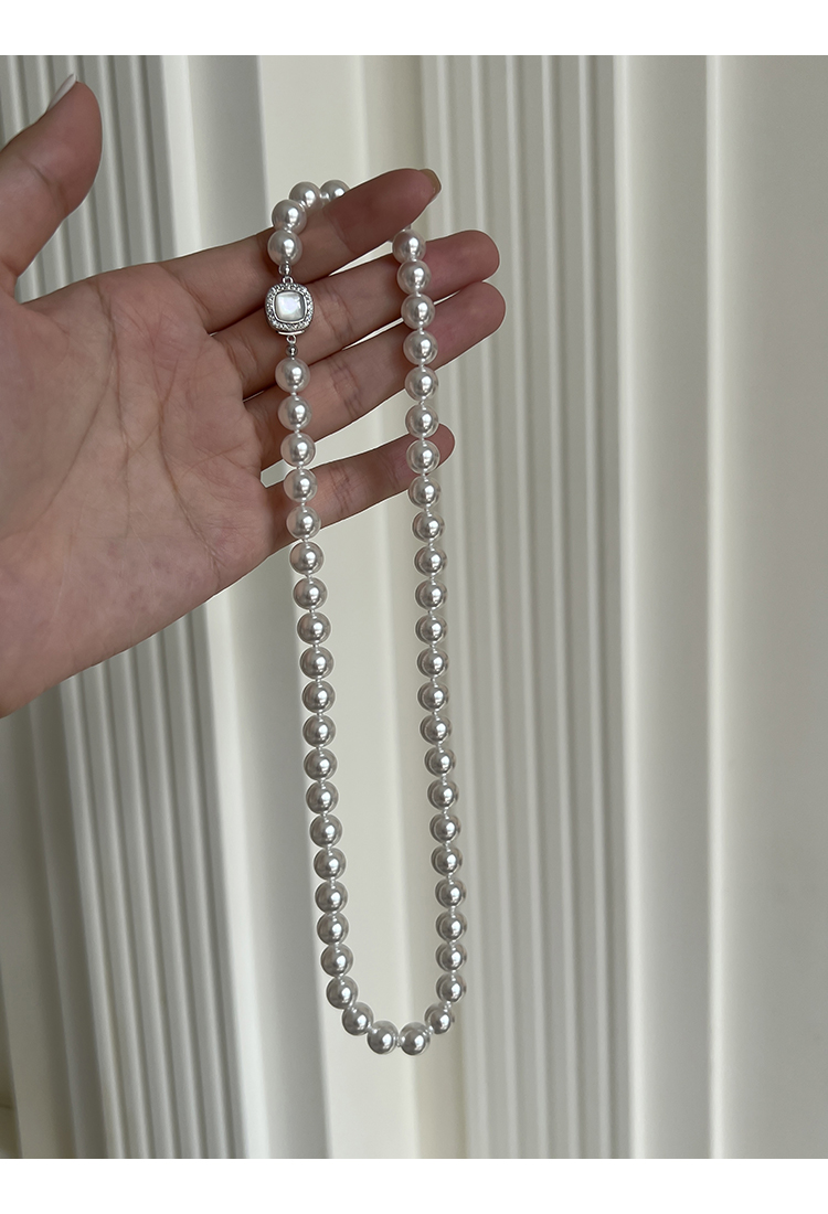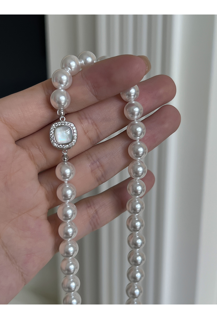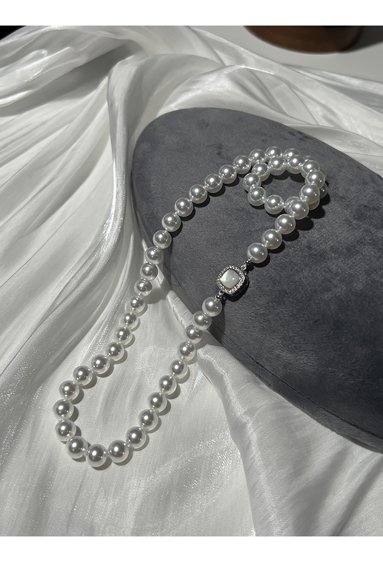 方糖家 輕奢貝母扣清冷瑩白澳白色珍珠法式打結項鏈小眾毛衣鏈女