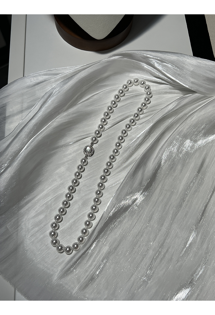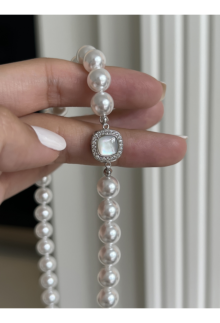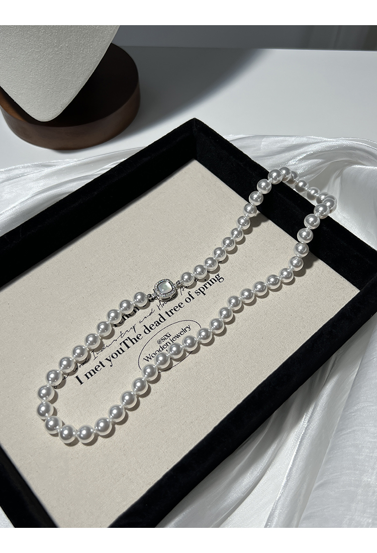 方糖家 原創清冷瑩白澳白色雙層纏繞珍珠貝母扣項鏈輕奢毛衣鏈女
