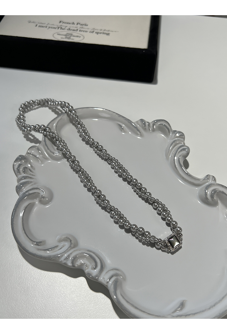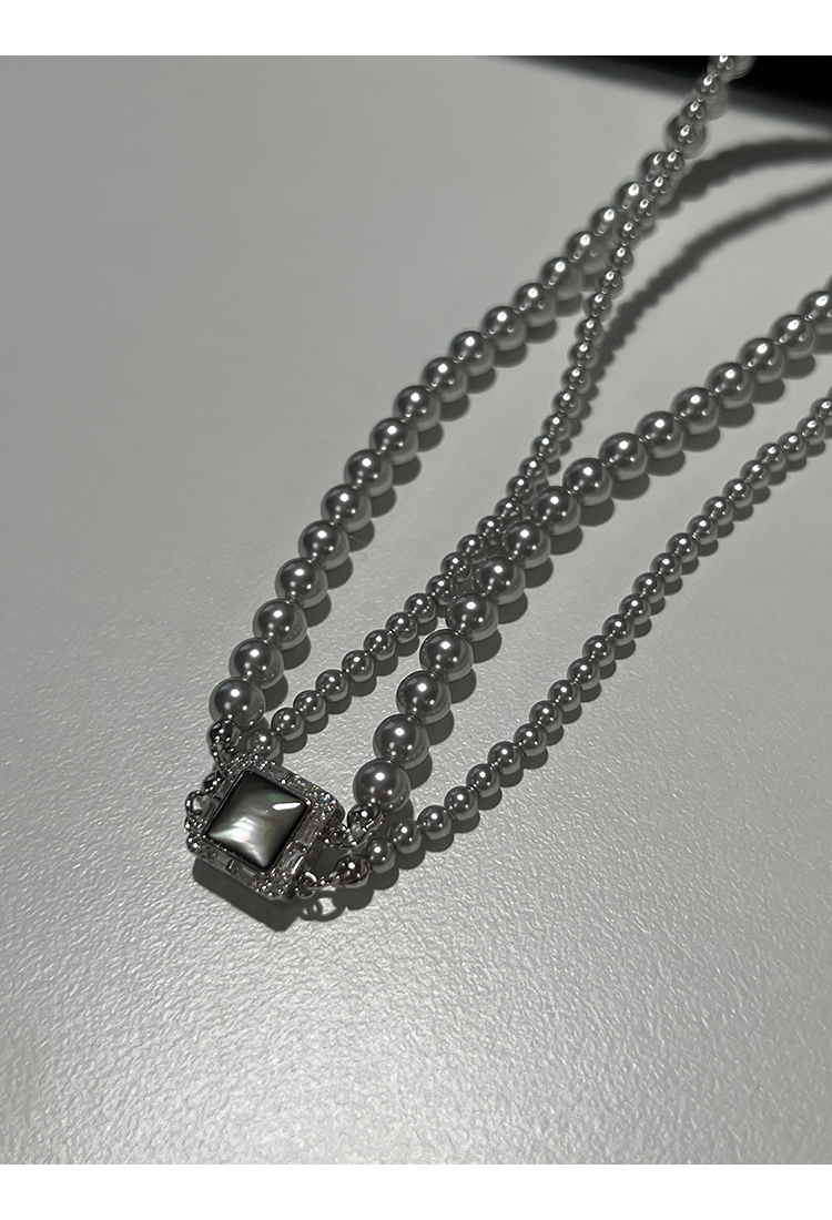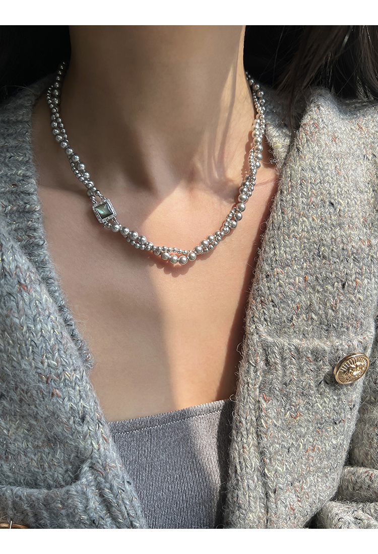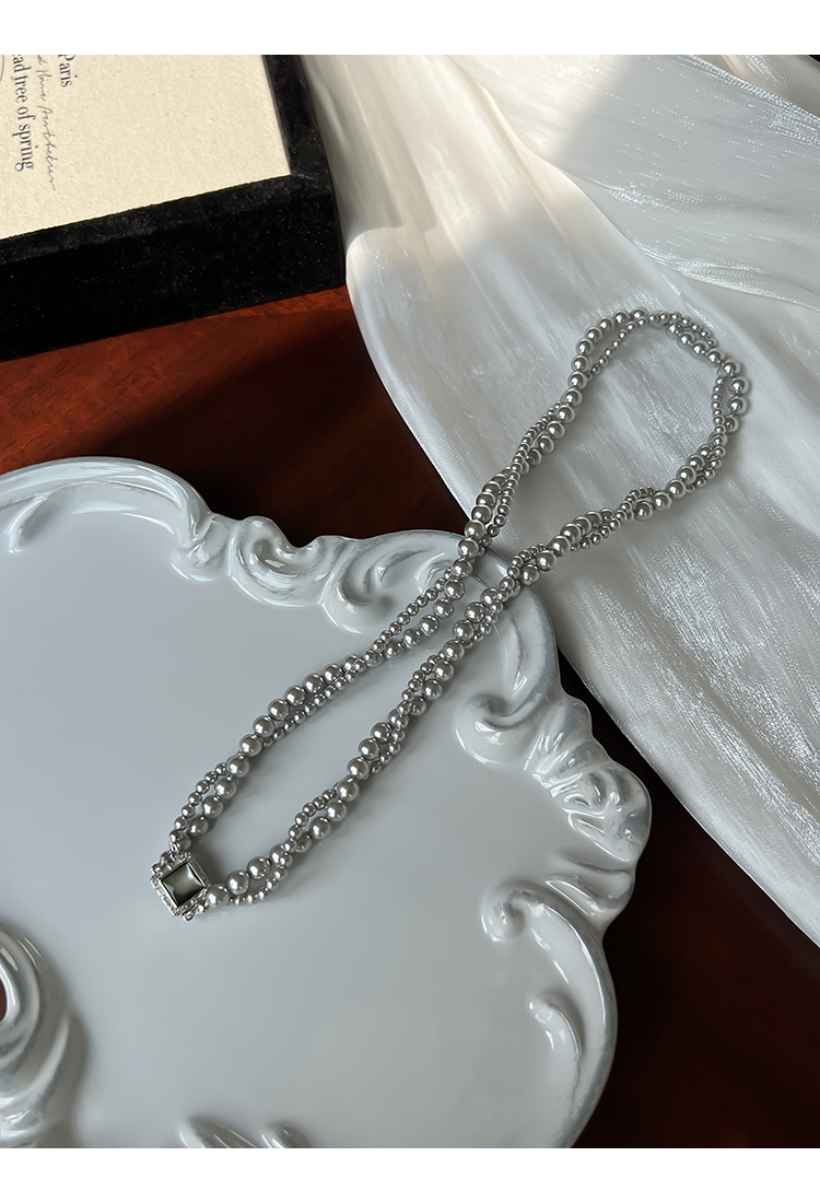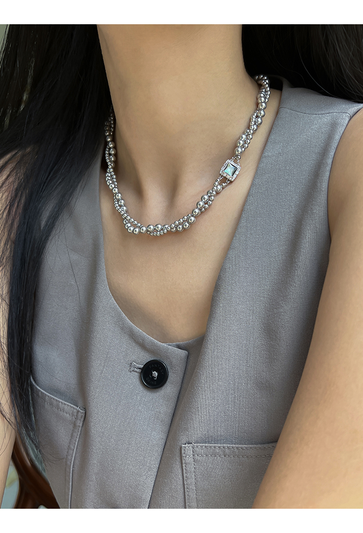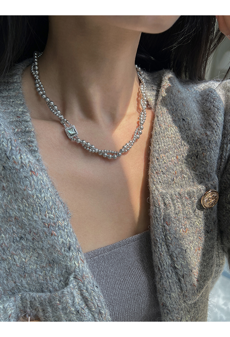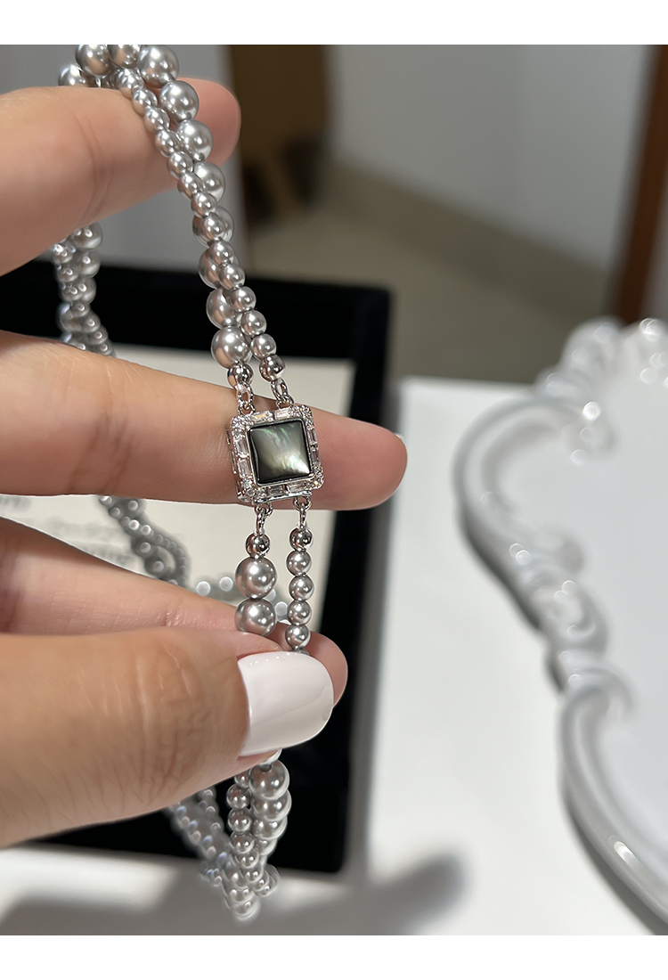 方糖家 原創真多麻色銀灰珍珠雙層編織貝母項鏈輕奢小眾毛衣鏈女