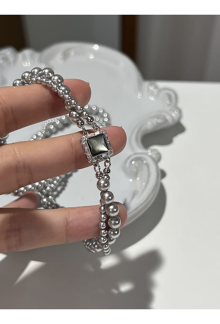 方糖家 原創清冷瑩白澳白色雙層纏繞珍珠貝母扣項鏈輕奢毛衣鏈女