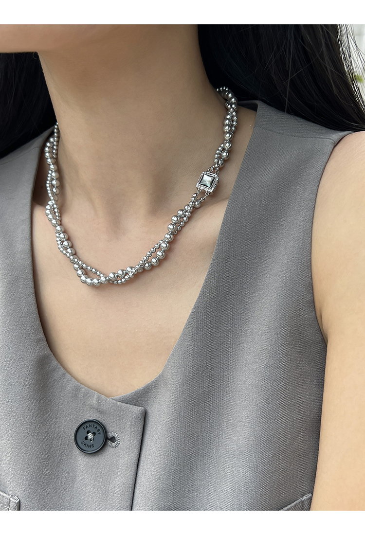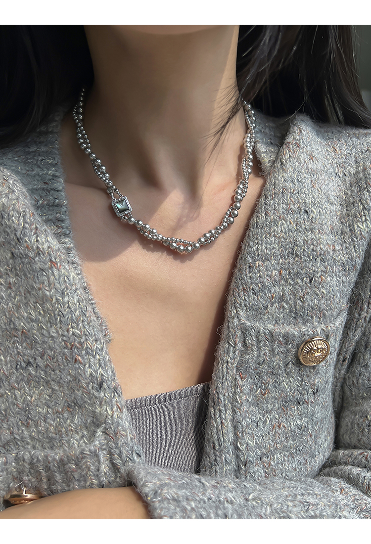 方糖家銀灰香檳色施家雙層女毛衣鏈