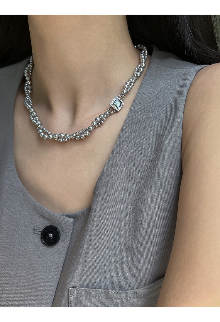 方糖家 清冷真多麻色混彩雙層麻花銀灰貝母扣項鏈女高級感毛衣鏈