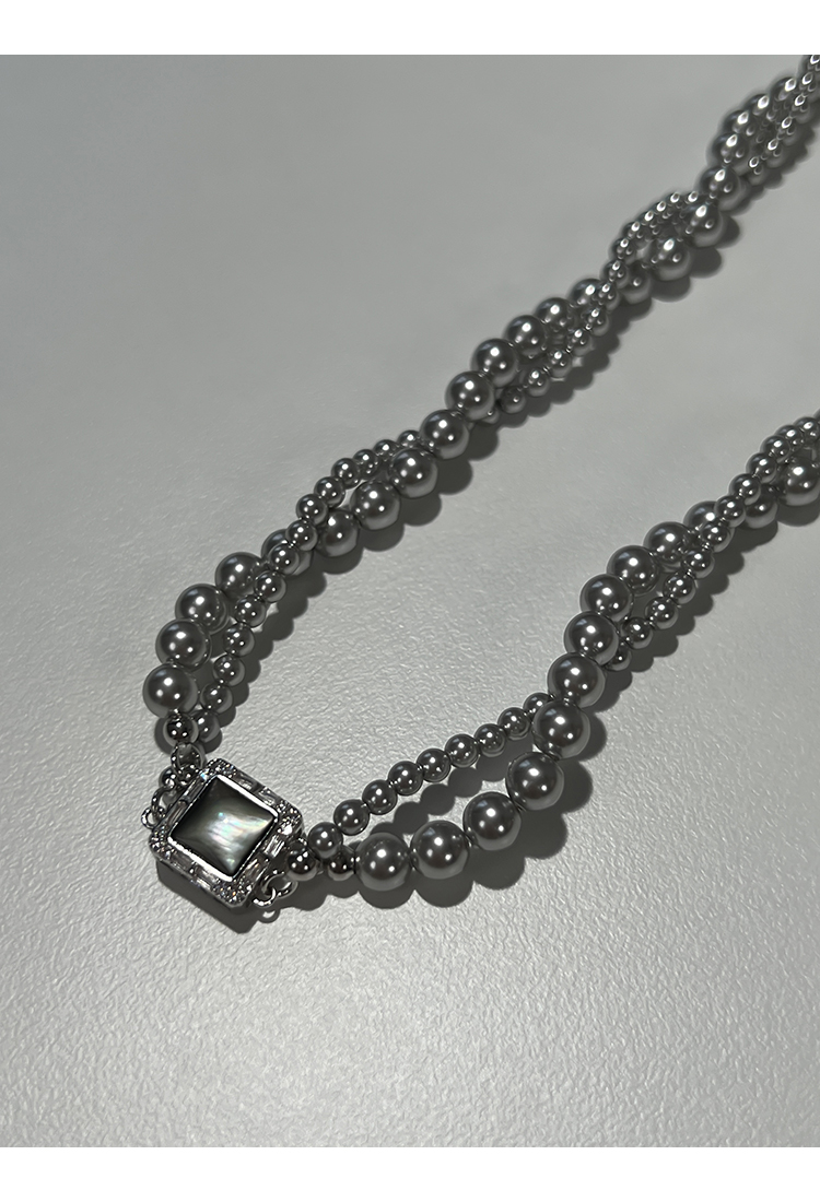上新9折原創貝母寶箱扣銀灰色頸鏈