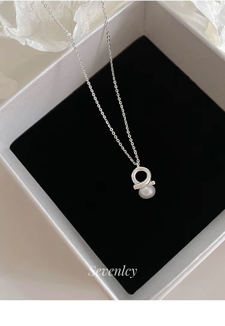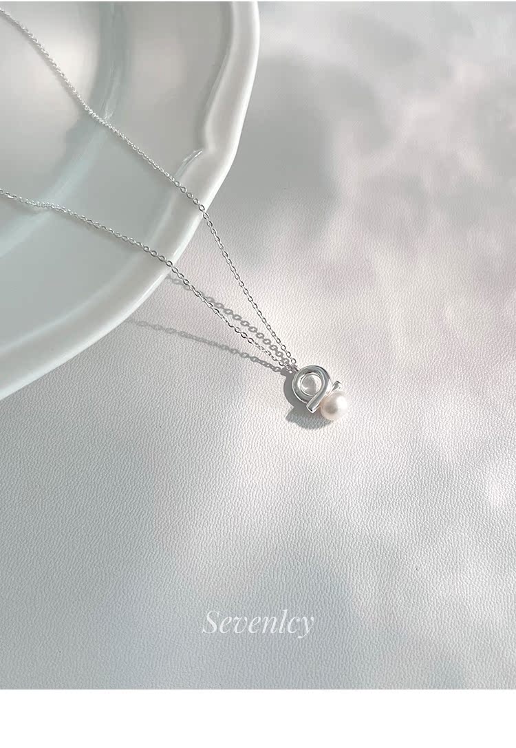 SEVENLCY同心結 素鏈純銀清冷氣質美高級925銀真珍珠鎖骨鏈配飾女