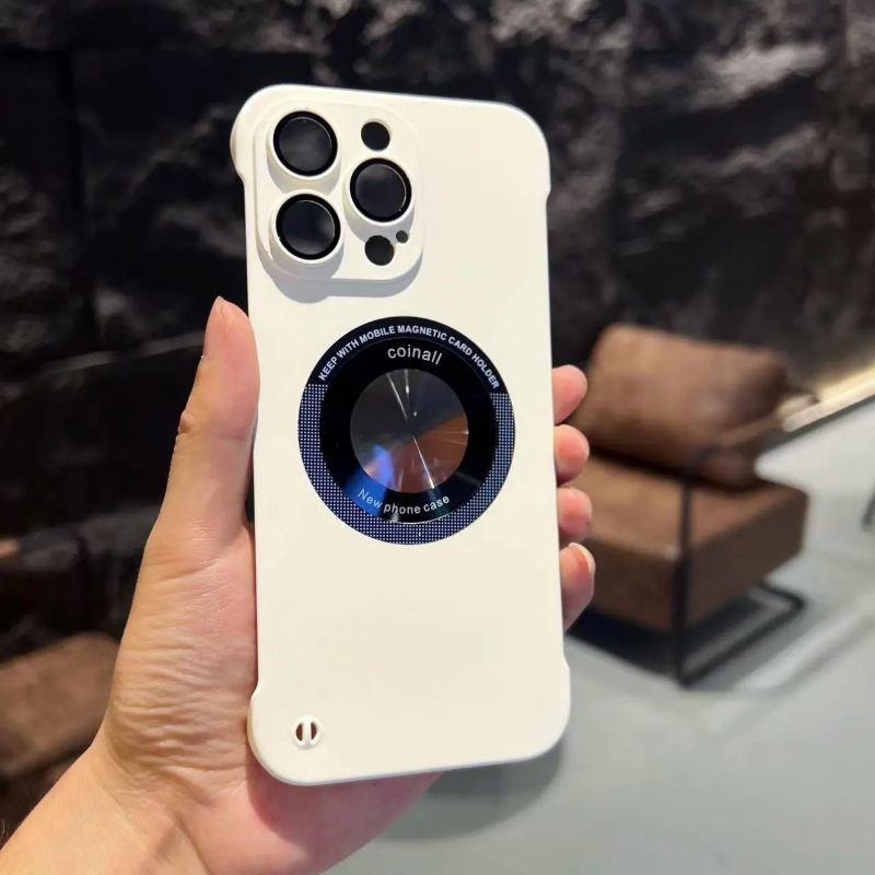 無邊框磨砂膚感磁吸露標適用蘋果14promax手機殼新款15漏標純色iPhone13pro帶鏡頭膜12散熱透氣11創意保護套