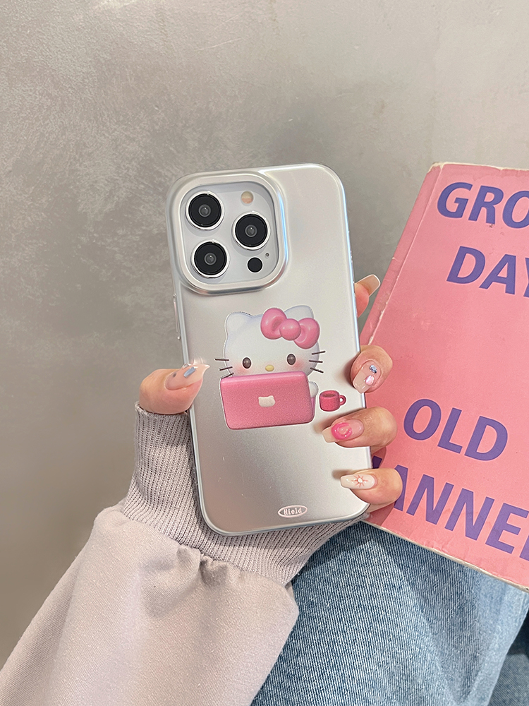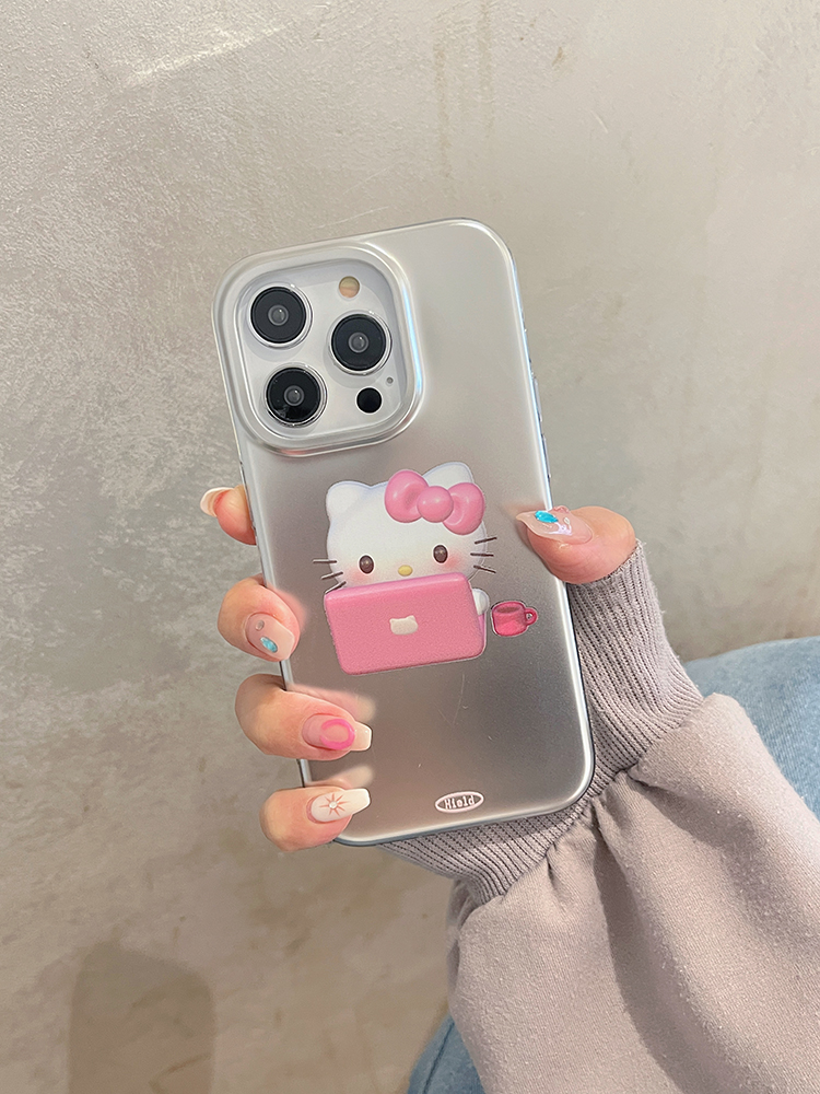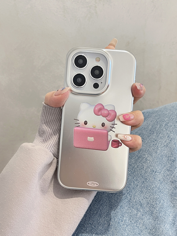 電鍍銀色線條Kitty貓適用蘋果15promax手機殼iphone14女款15pro新款13卡通創意趣味可愛12軟殼pro防摔11硅膠
