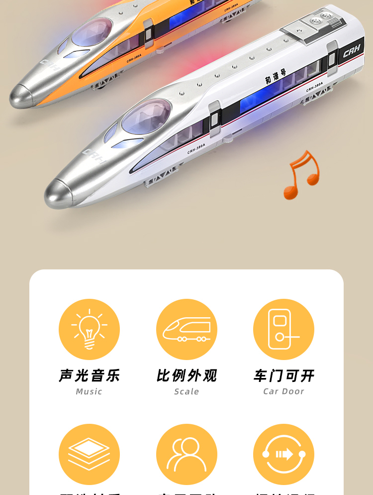兒童高鐵動車和諧號火車玩具汽車慣性列車模型寶寶玩具車音樂男孩