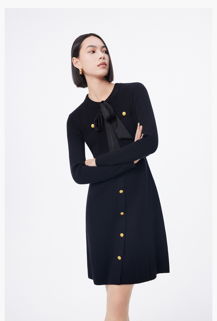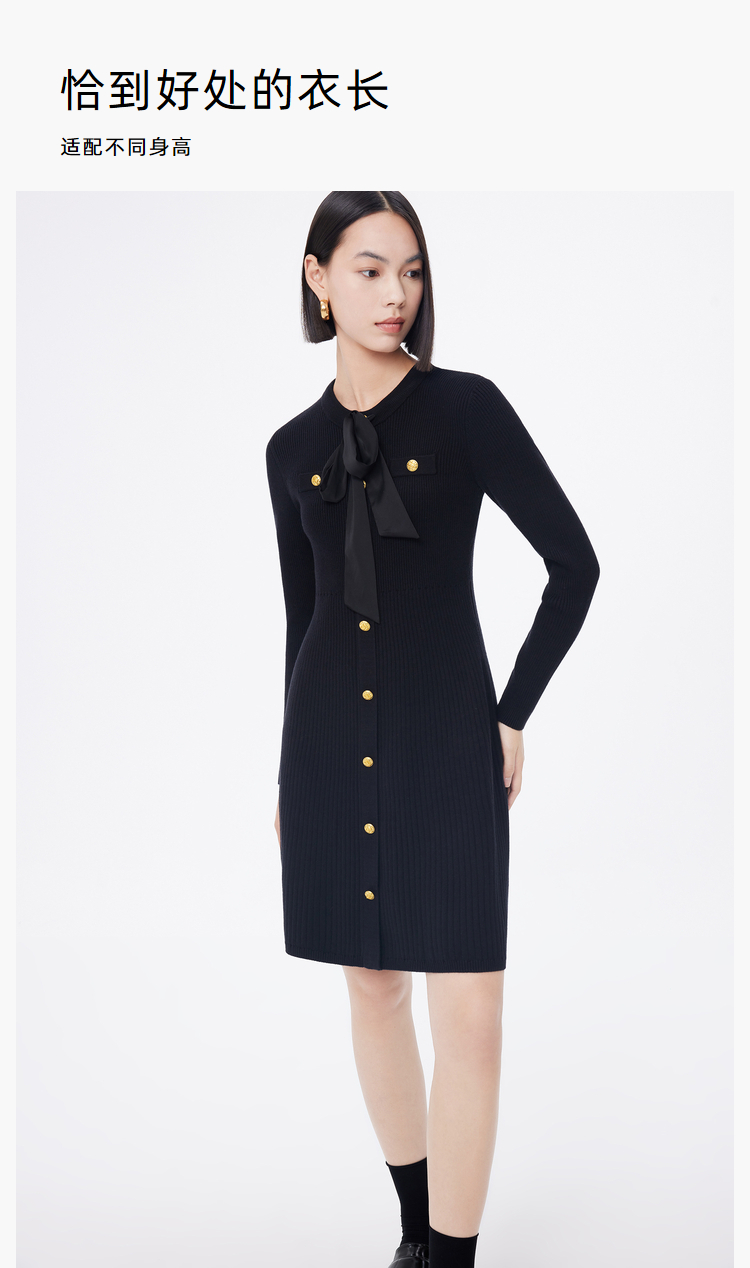 LILY2023冬新款女裝氣質優雅通勤時尚都市針織連衣裙小黑裙小個子