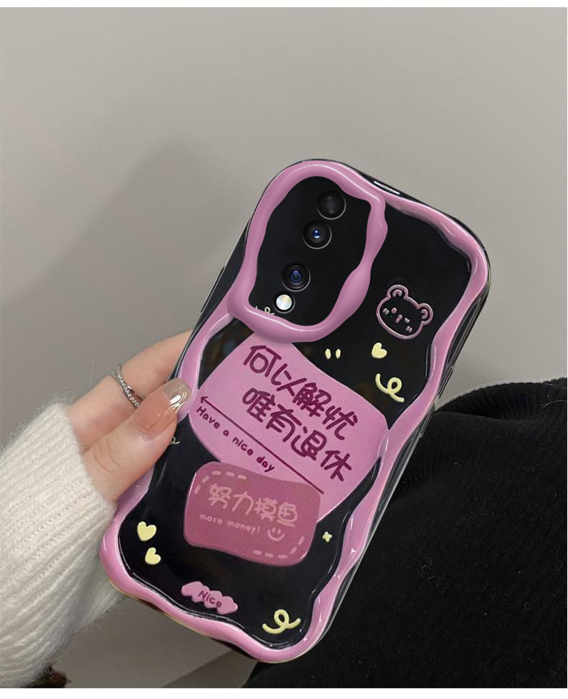 適用于榮耀90卡通手機殼檸檬奶茶REA-AN00支架手鏈honor90小清新榮譽90pro個性創意reaanoo波浪紋防摔anoo軟