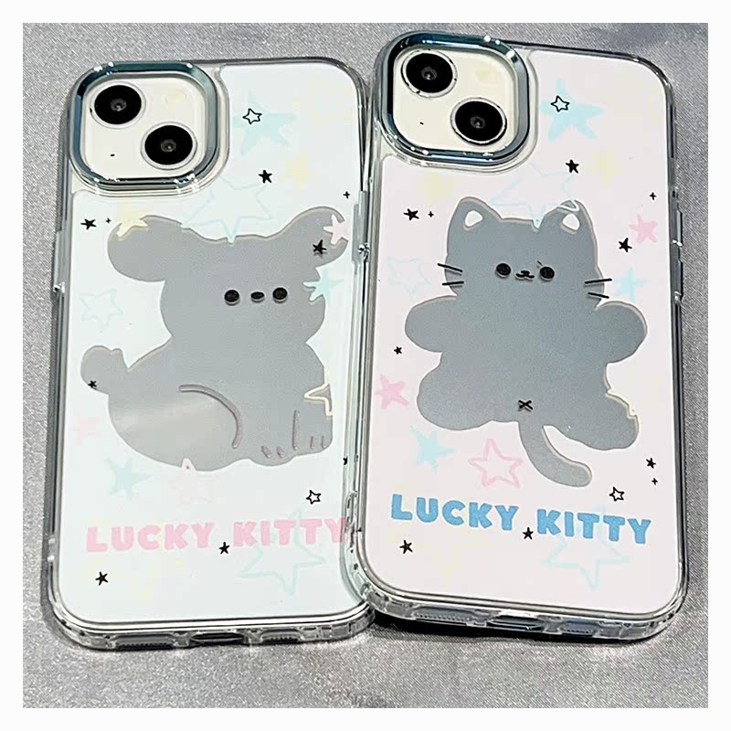 情侶電鍍小狗貓咪適用蘋果15promax手機殼iphone14女款15pro新款13可愛趣味創意少女12硬殼pro防摔11硅膠全包