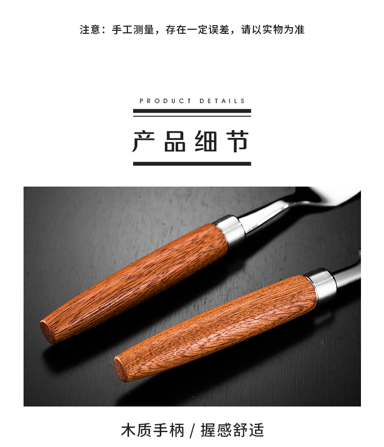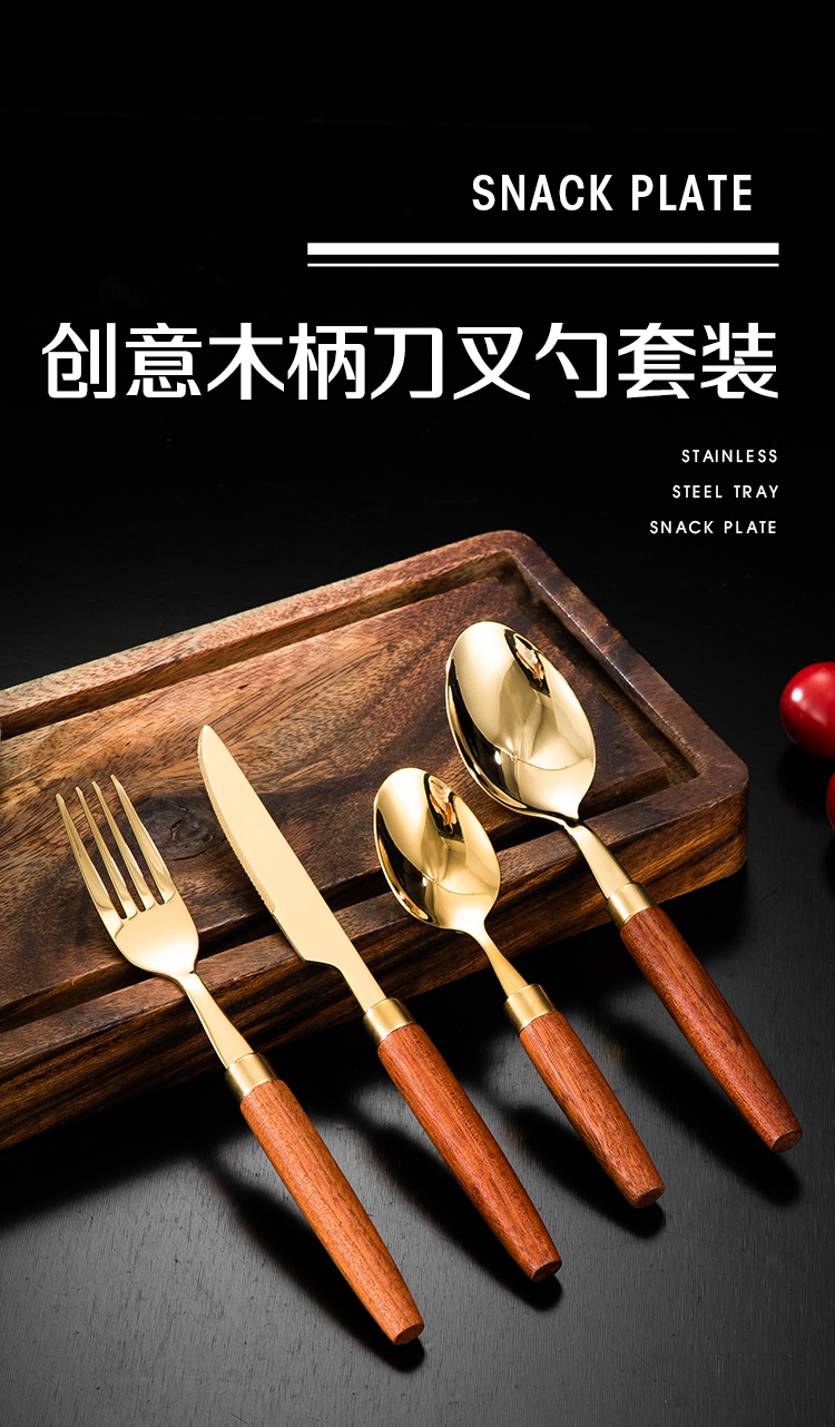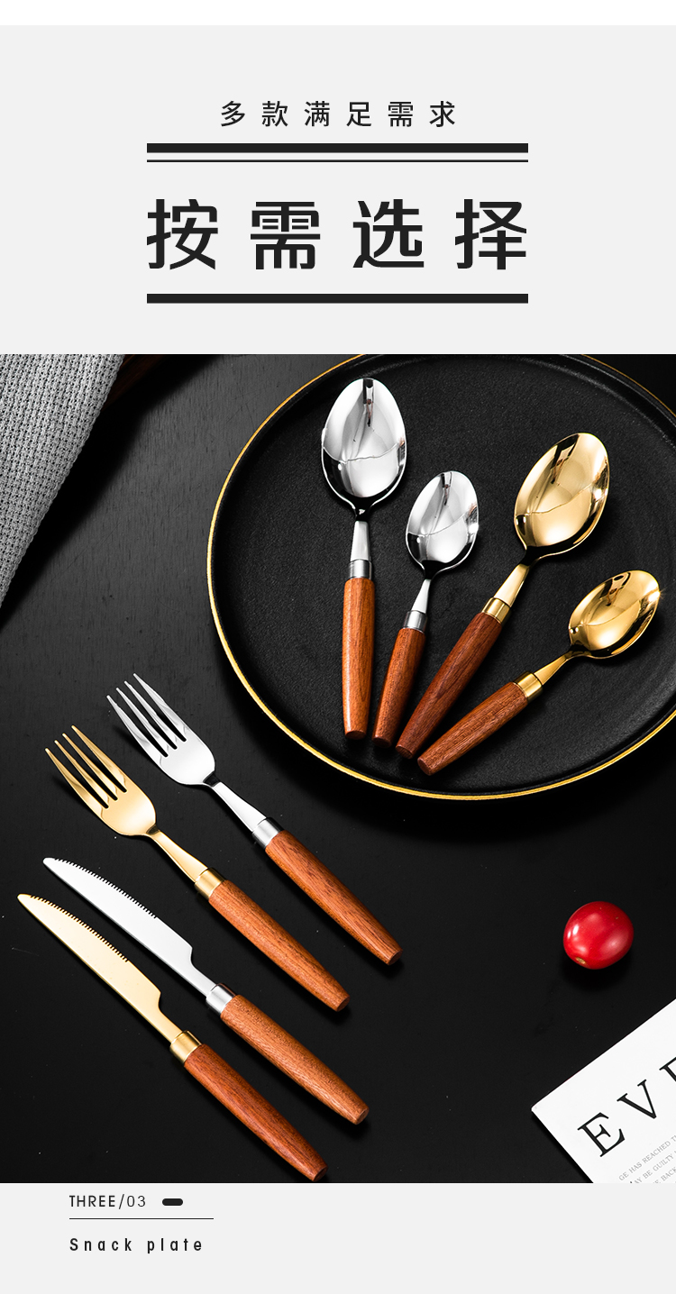 木柄牛排刀叉勺套裝ins風304不銹鋼甜品勺商用西餐餐具刀叉兩件套