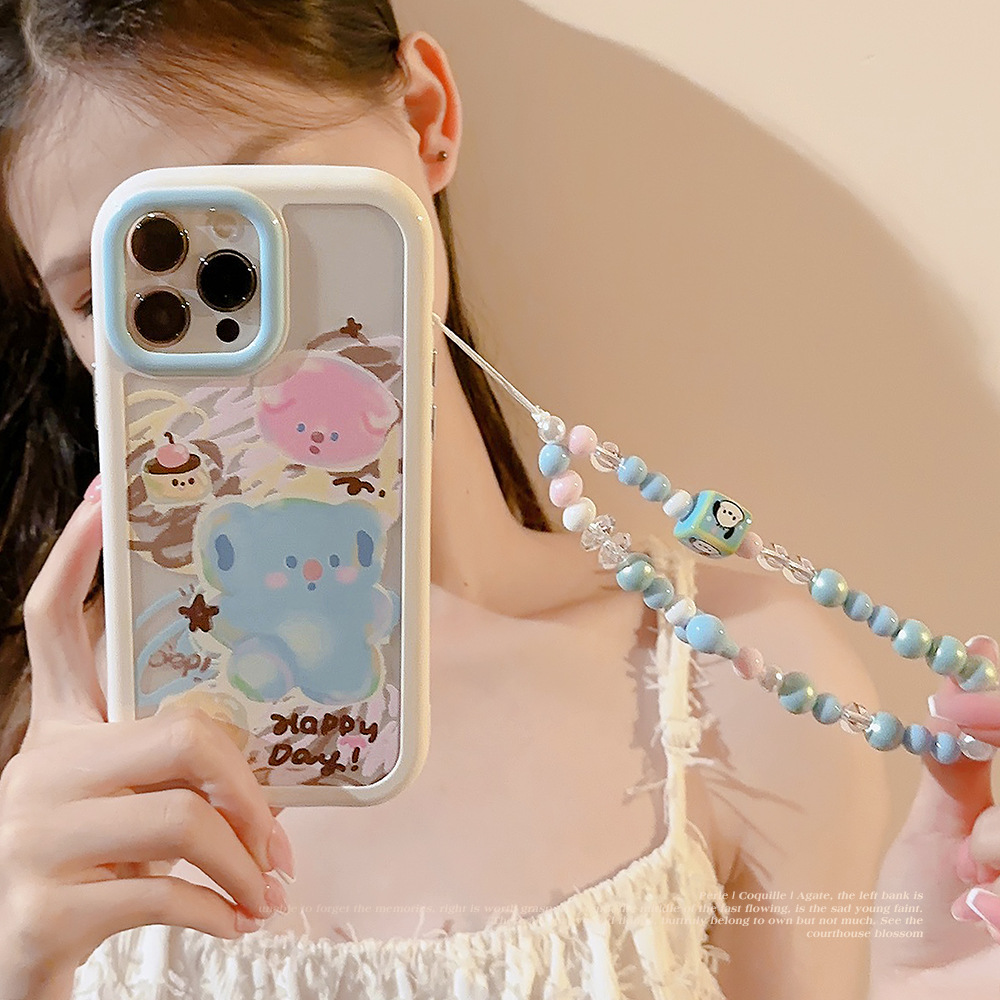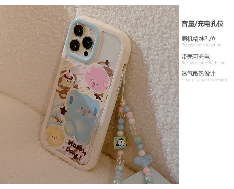 AJCKP工作室適用于蘋果15手機殼涂鴉粉藍小狗帶手鏈iPhone15promax新款14pro女款13pro硅膠透明11/xr全包軟殼
