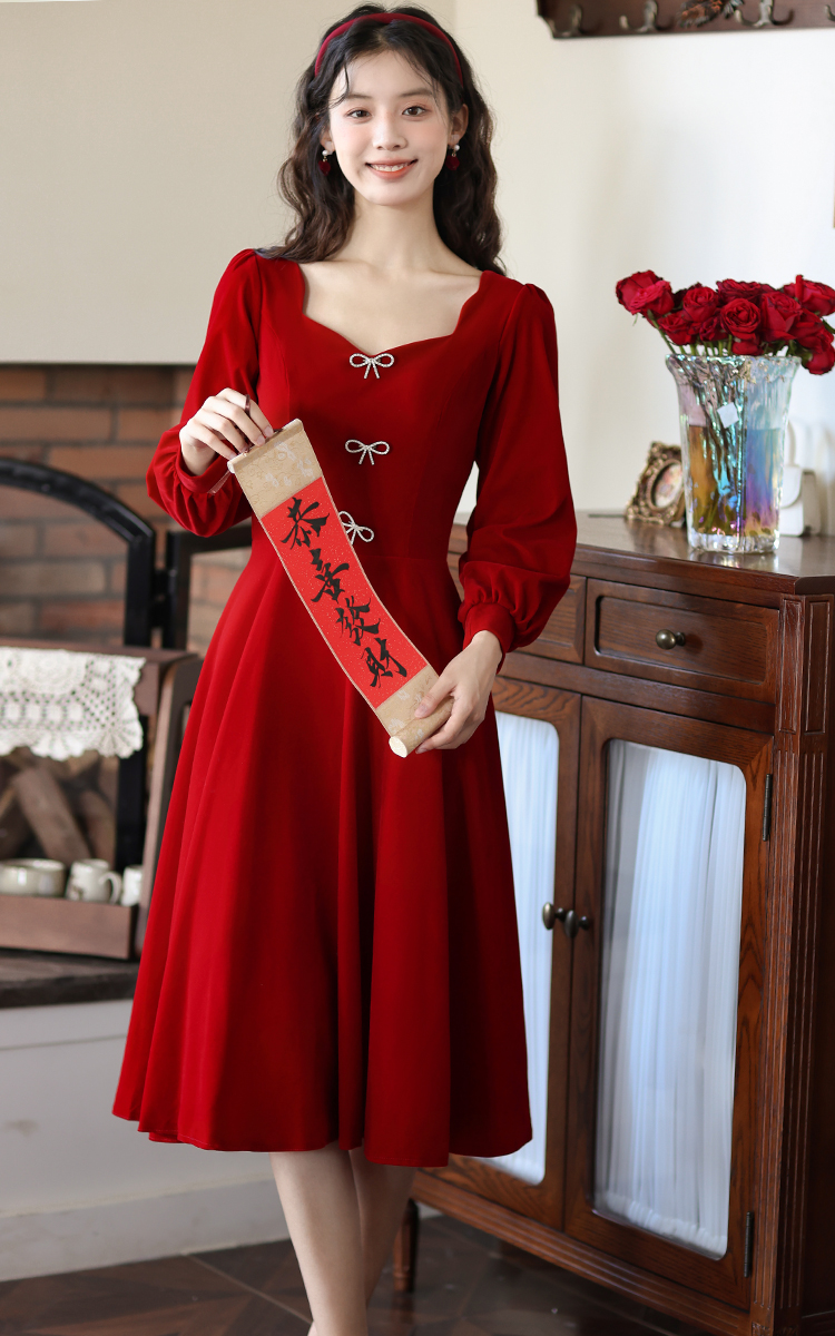 敬酒服新娘回門便裝訂婚禮服平時可穿高級感絲絨紅色連衣裙女秋冬