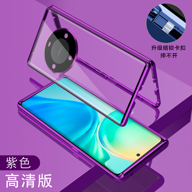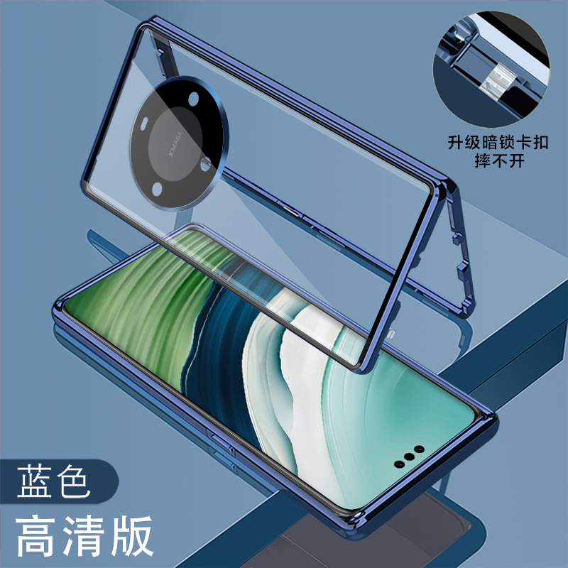 鏡頭全包防偷窺適用華為mate60pro手機殼新款MATE60磁吸雙面玻璃素皮防摔保護套PRO+透明魅特六十男女款薄5g