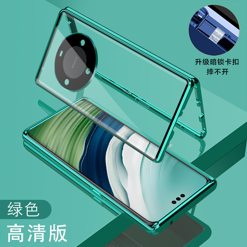 防偷窺鏡頭全包適用華為mate60pro手機殼mate60保護套+新品雙面玻璃磁吸翻蓋防摔5G透明卡扣男女款個性潮超薄