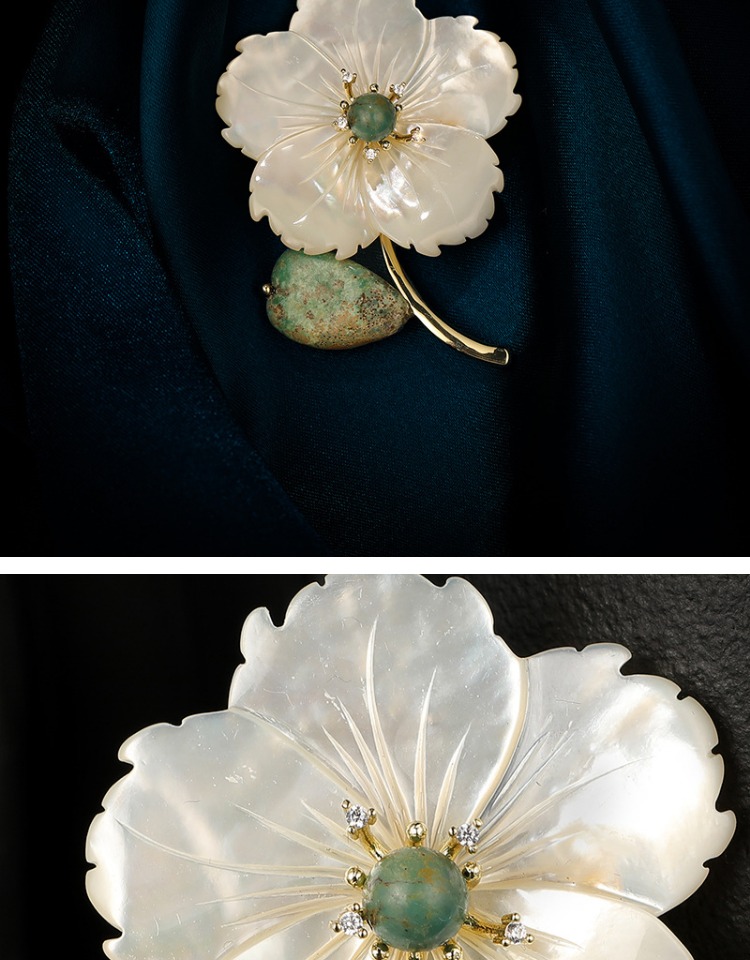 高檔桃花胸針母貝貝殼新品促銷帝皇石大氣優雅配大衣胸花飾品別針