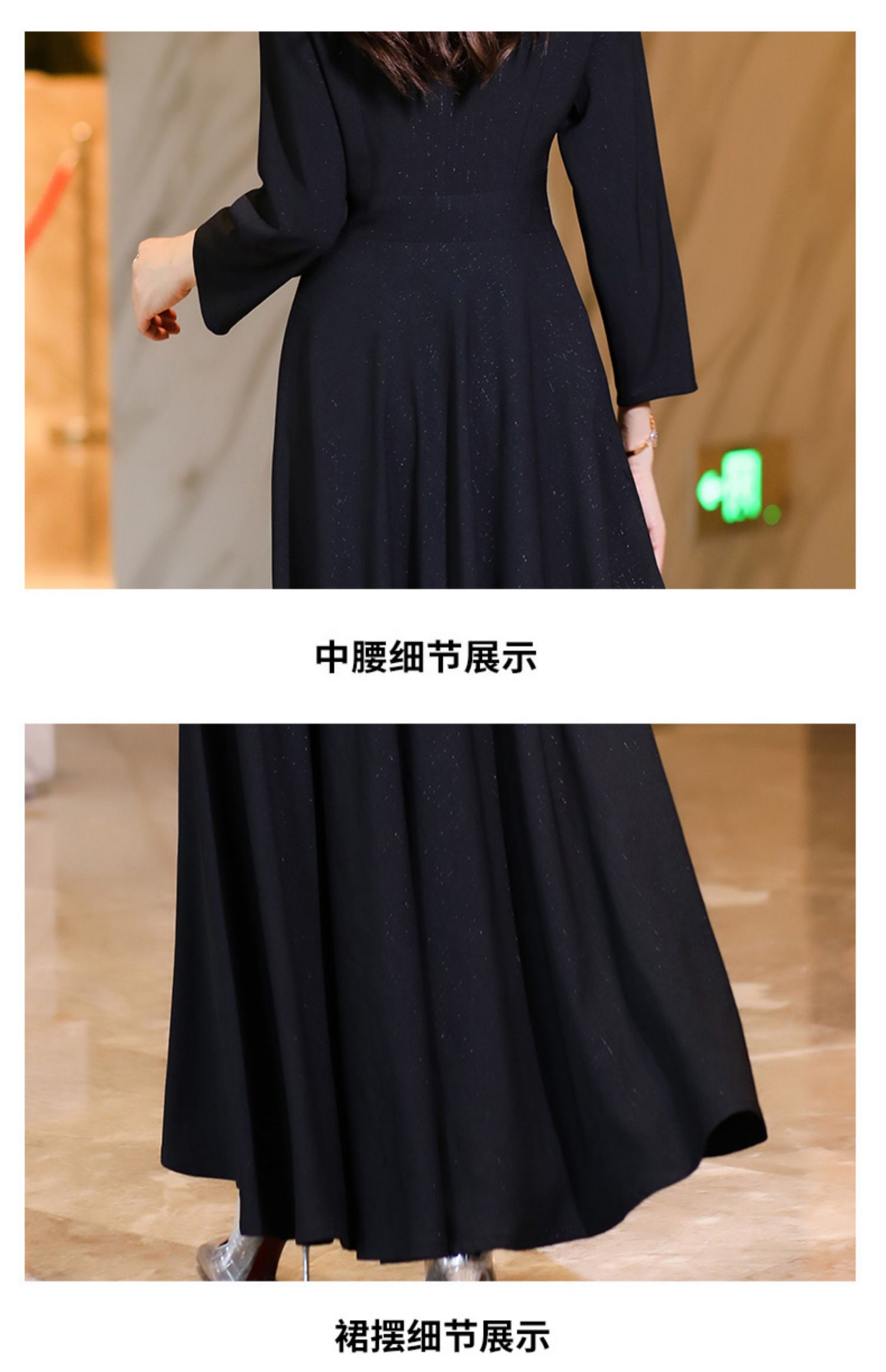 法式黑色連衣裙女高端氣質收腰2023秋季新款高級感過膝長裙1787