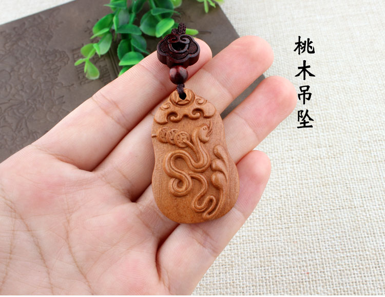 桃木雕刻十二生肖項鏈本命年屬相吊墜木質掛件復古百搭長款毛衣鏈