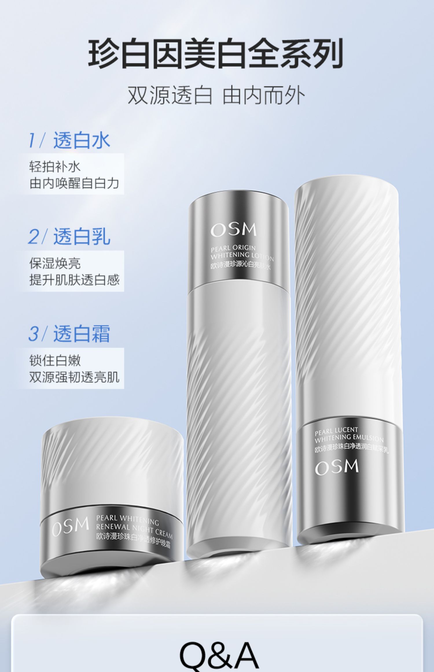 歐詩漫珍白因乳液面霜正品珍珠比凈透潤白賦采乳美白淡斑改善暗沉