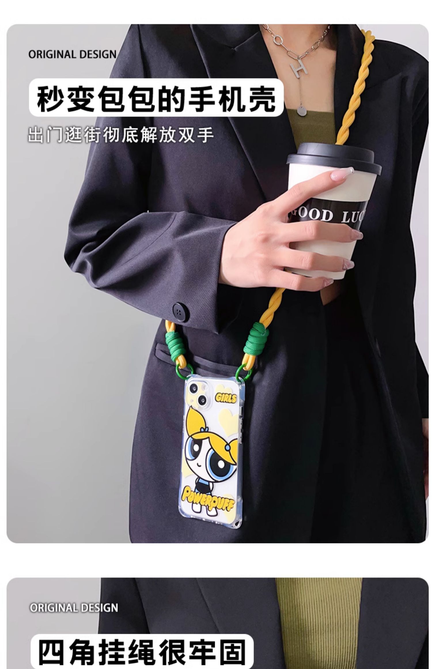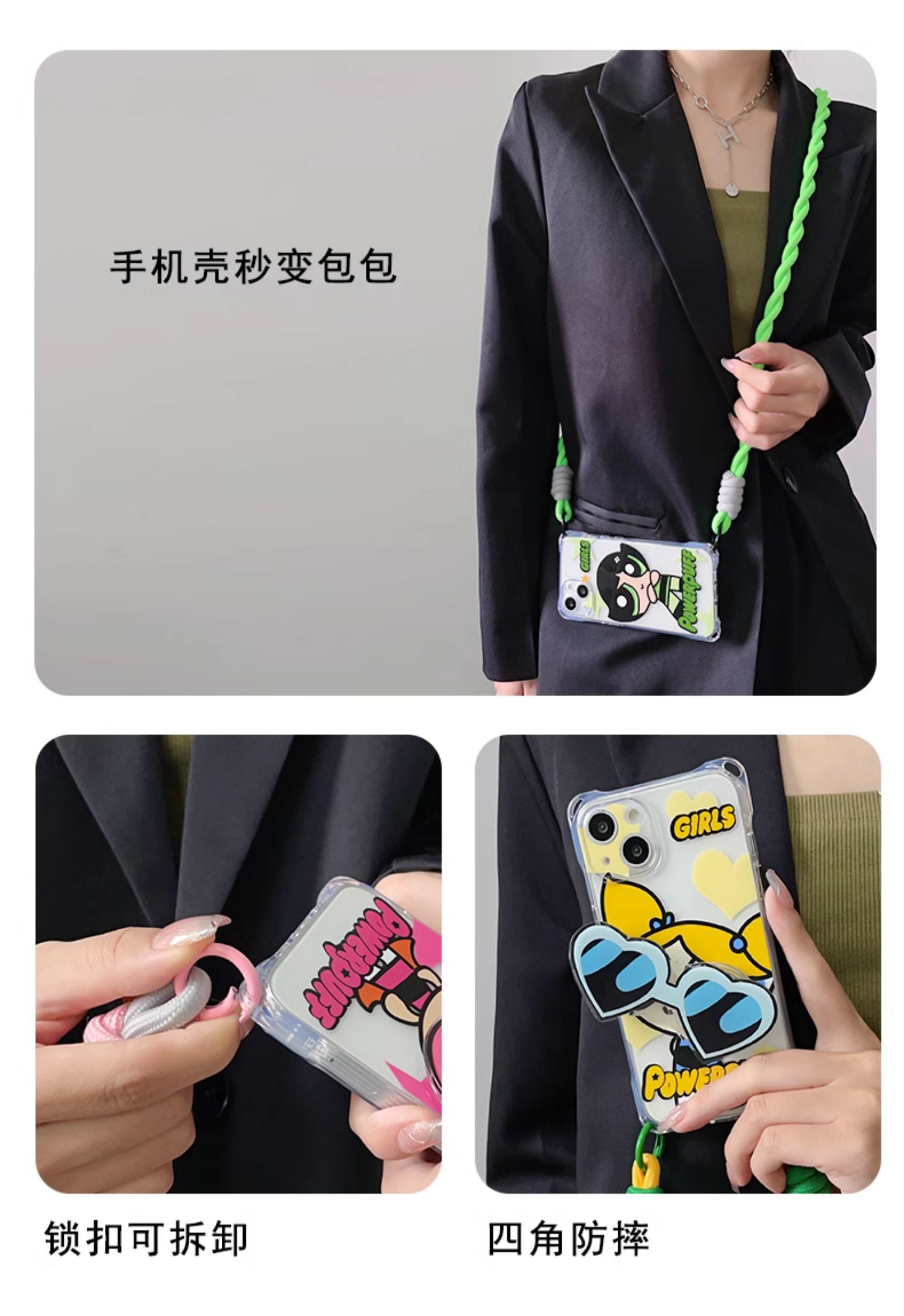 小女警蘋果15手機殼掛繩斜挎適用iphone14promax四角開孔硅膠14pro墨鏡支架13手腕手提11背帶斜跨12韓系小眾x