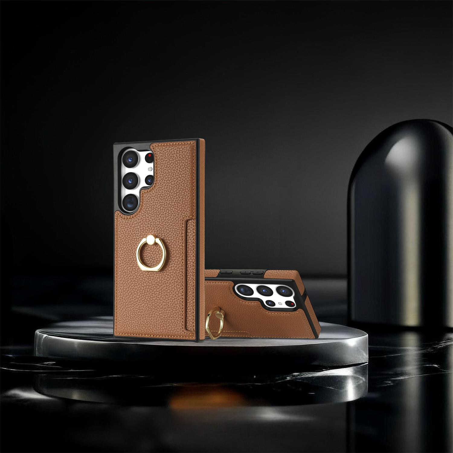 皮質指環扣支架適用三星s23ultra手機殼新款零錢包卡夾s22+plus卡包S21FE插卡s20口袋放卡A54套A53A52S手扣環