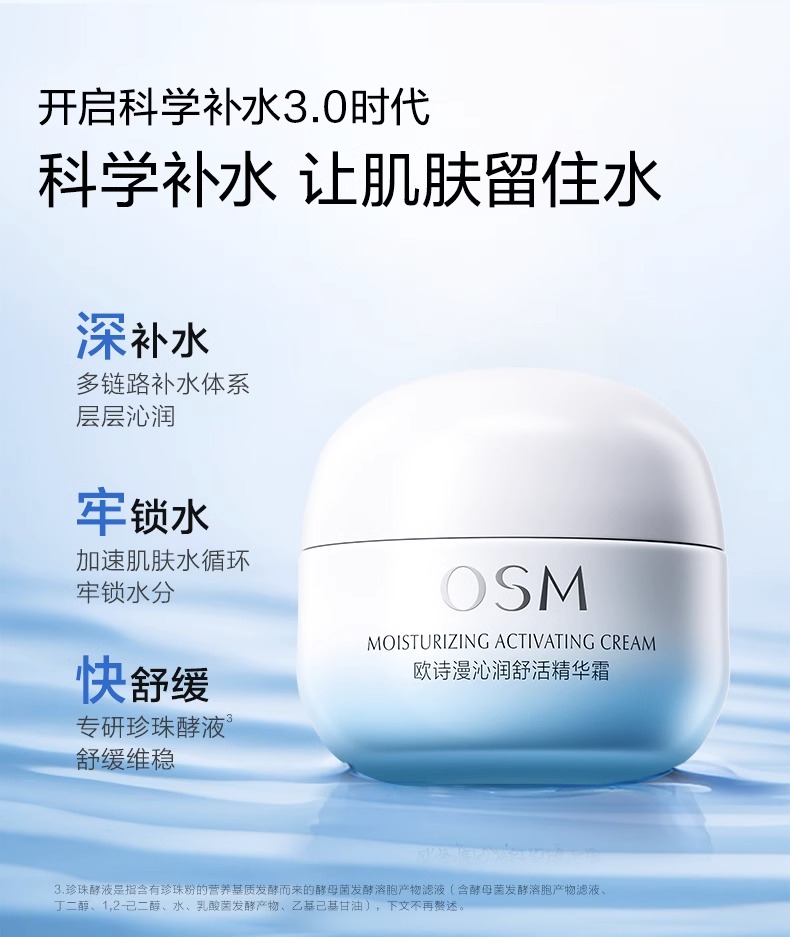 歐詩漫沁潤舒活精華霜補水保濕敏感肌屏障舒緩修護面霜提亮膚色女