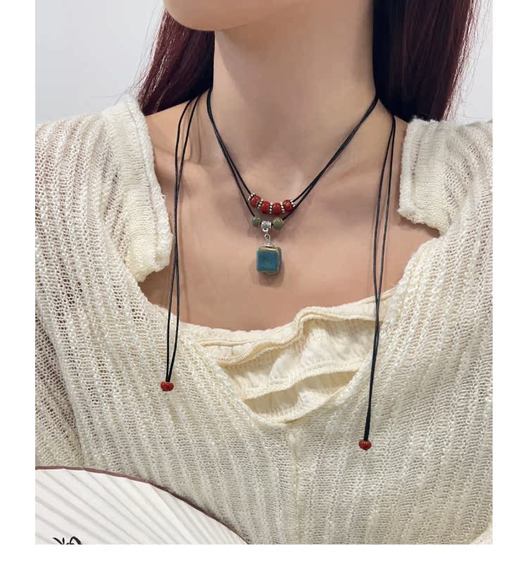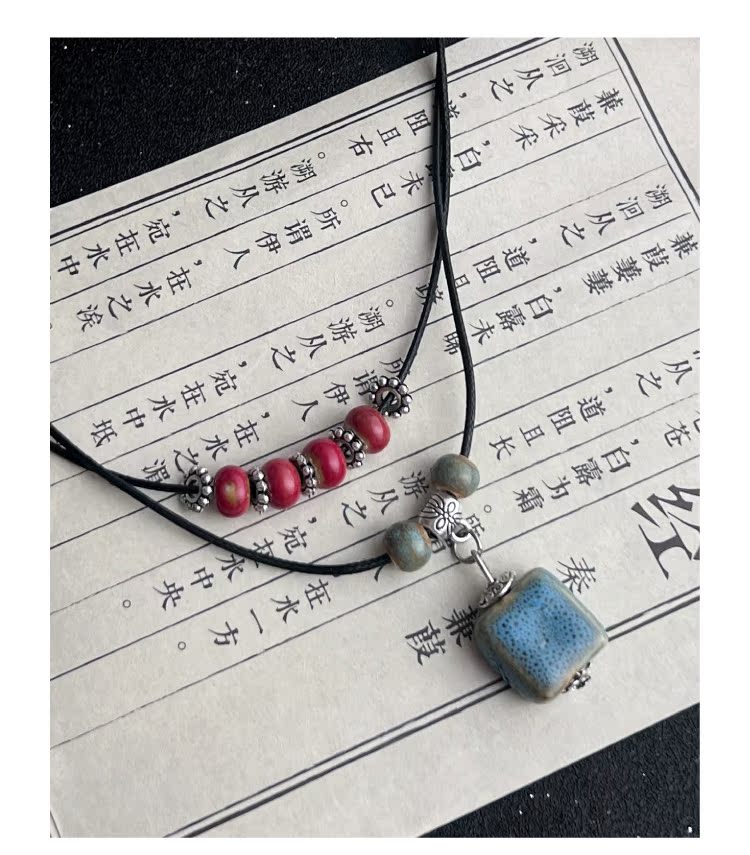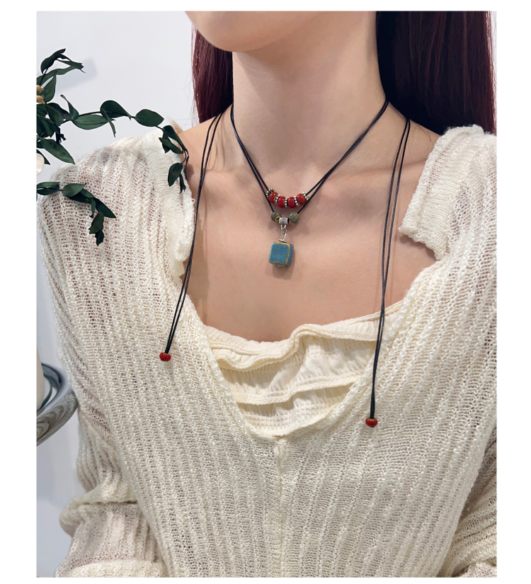 KANSAI新款陶瓷串珠編織繩項鏈女小眾復古民族風新中式個性配飾品