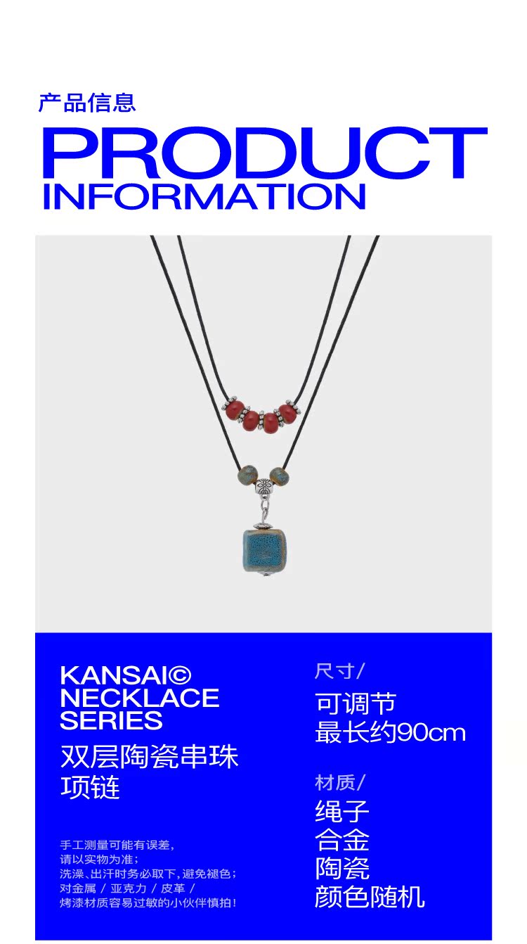 KANSAI新款雙層陶瓷串珠項鏈女小眾中國風復古時尚個性民族風配飾