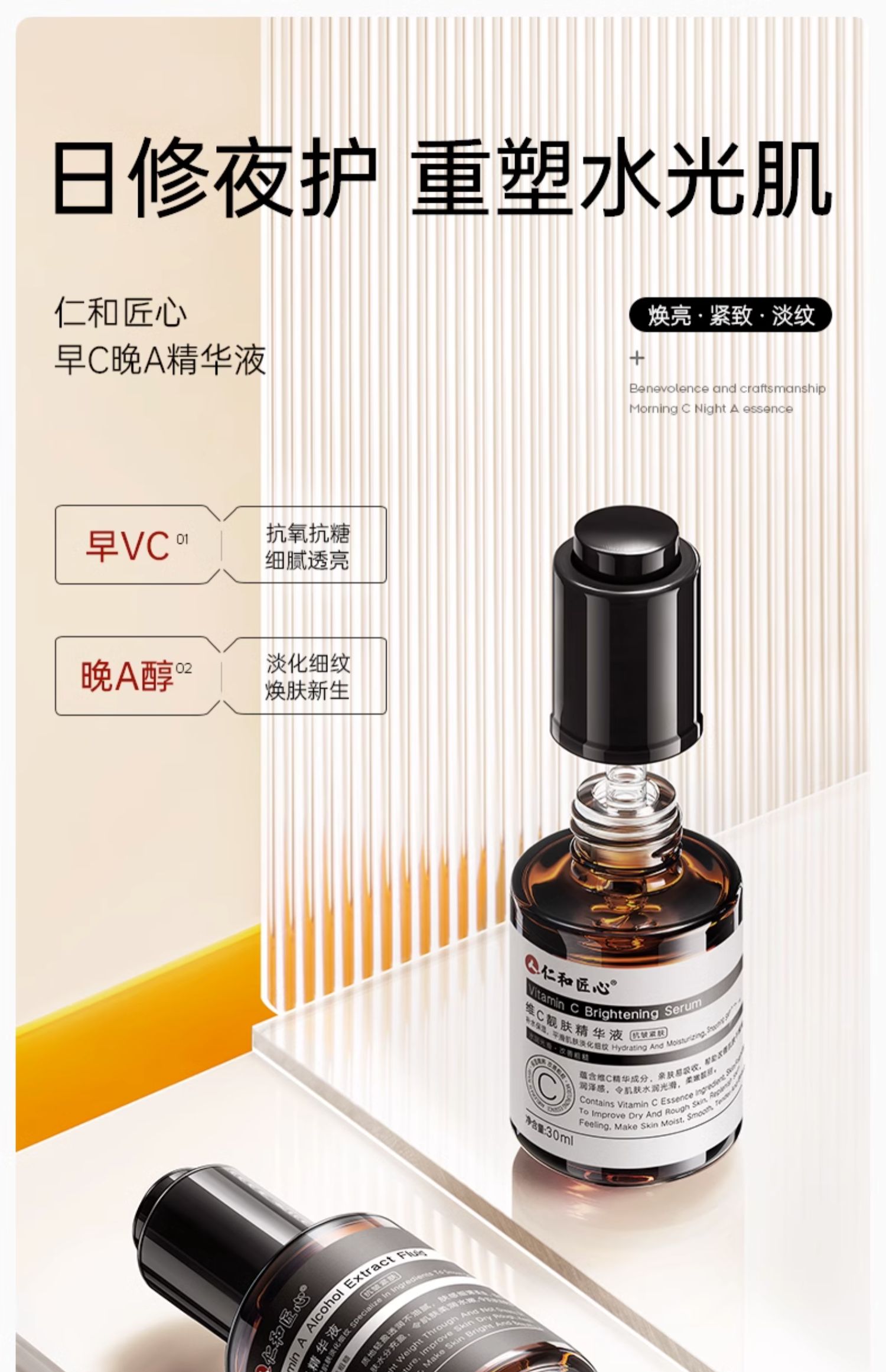 早c晚a雙抗精華液組合a醇vc抗皺緊致抗初老氧化面部暗沉去黃提亮