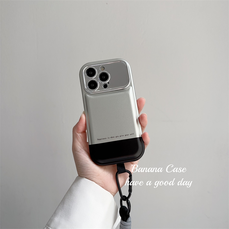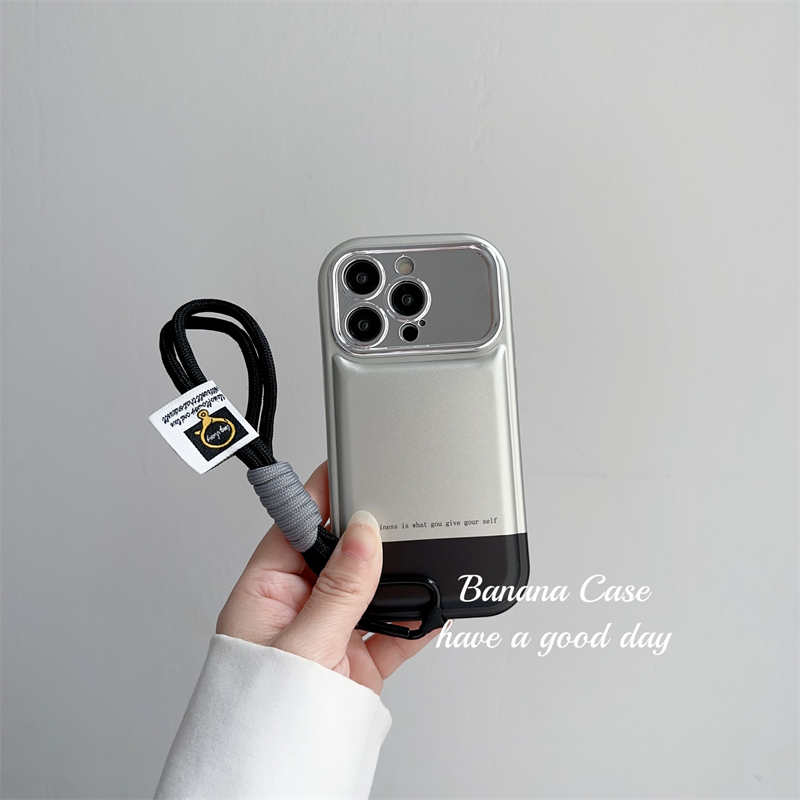 BananaCase高級感復古黑拼接銀色大視窗適用14pro蘋果15promax手機殼iPhone13黑色短掛繩12pro防摔磨砂保護套
