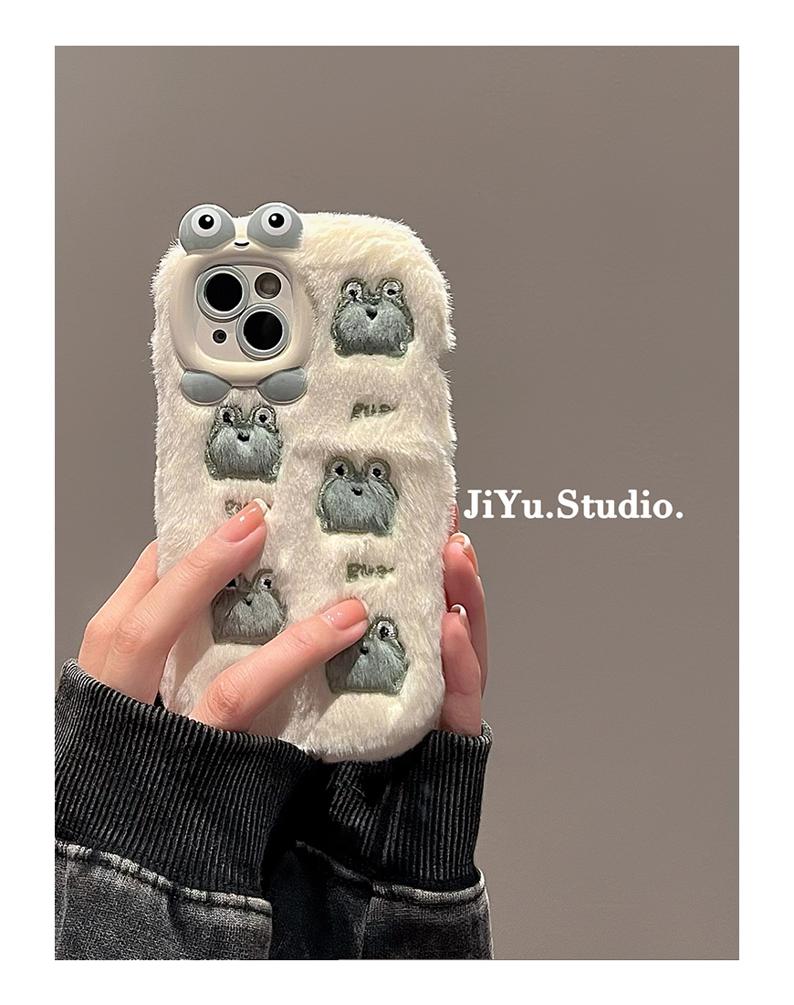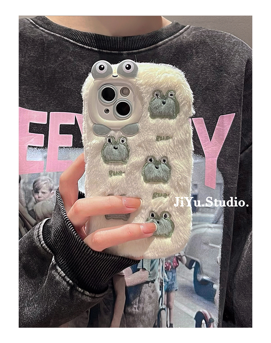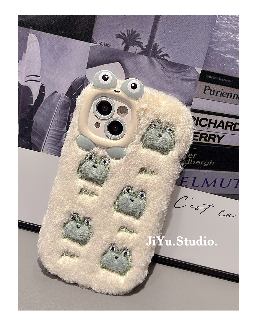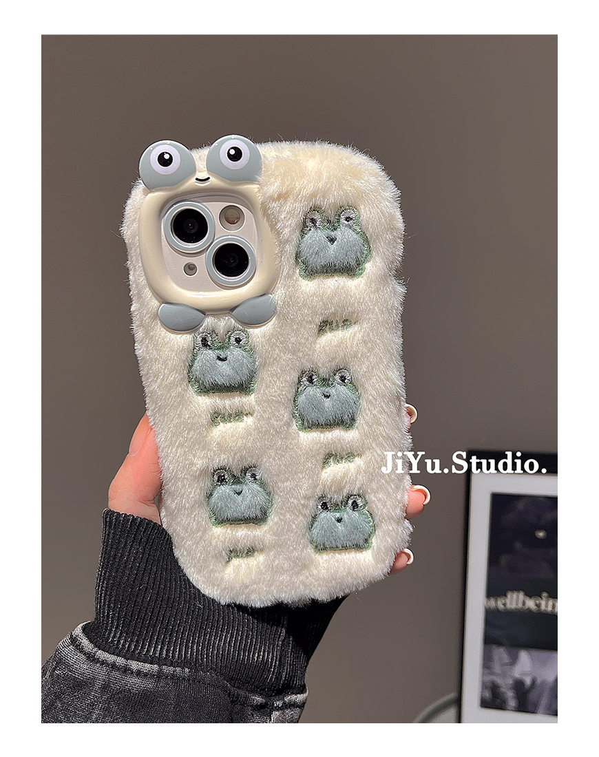 毛絨卡通可愛青蛙適用蘋果15promax手機殼iphone14秋冬新款13刺繡毛茸茸12高級感小眾ins風防摔全包女個性11