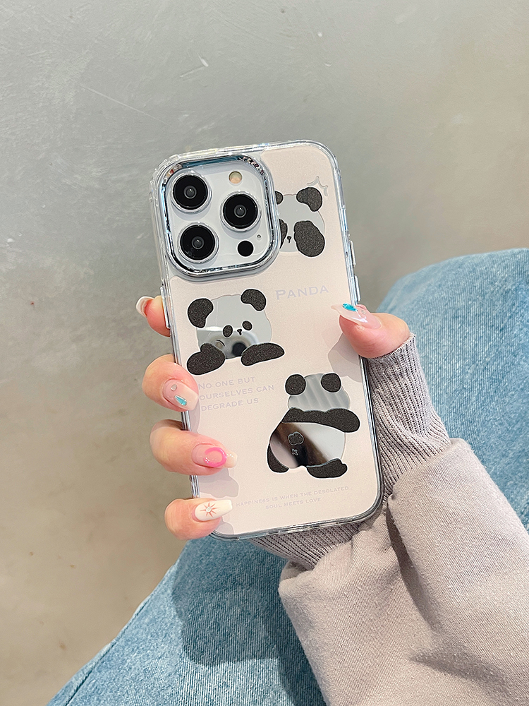 可愛卡通鏡面熊貓適用蘋果15promax手機殼iphone14pro高級感13小眾12新款11保護套max全包防摔個性創意網紅女