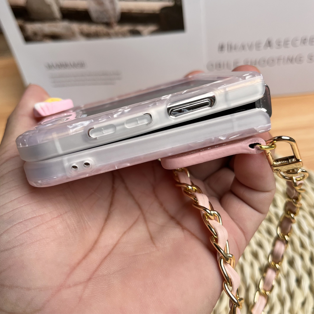 適用三星zflip5手機殼折疊少女粉硅膠超薄斜跨保護軟殼casetify zflip5全包時尚韓國代購手提創意可愛手機套
