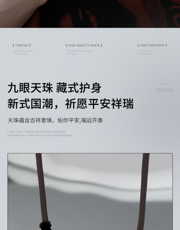 九眼天珠瑪瑙吊墜項鏈男生男款2023新款爆款飾品生日禮物送男友
