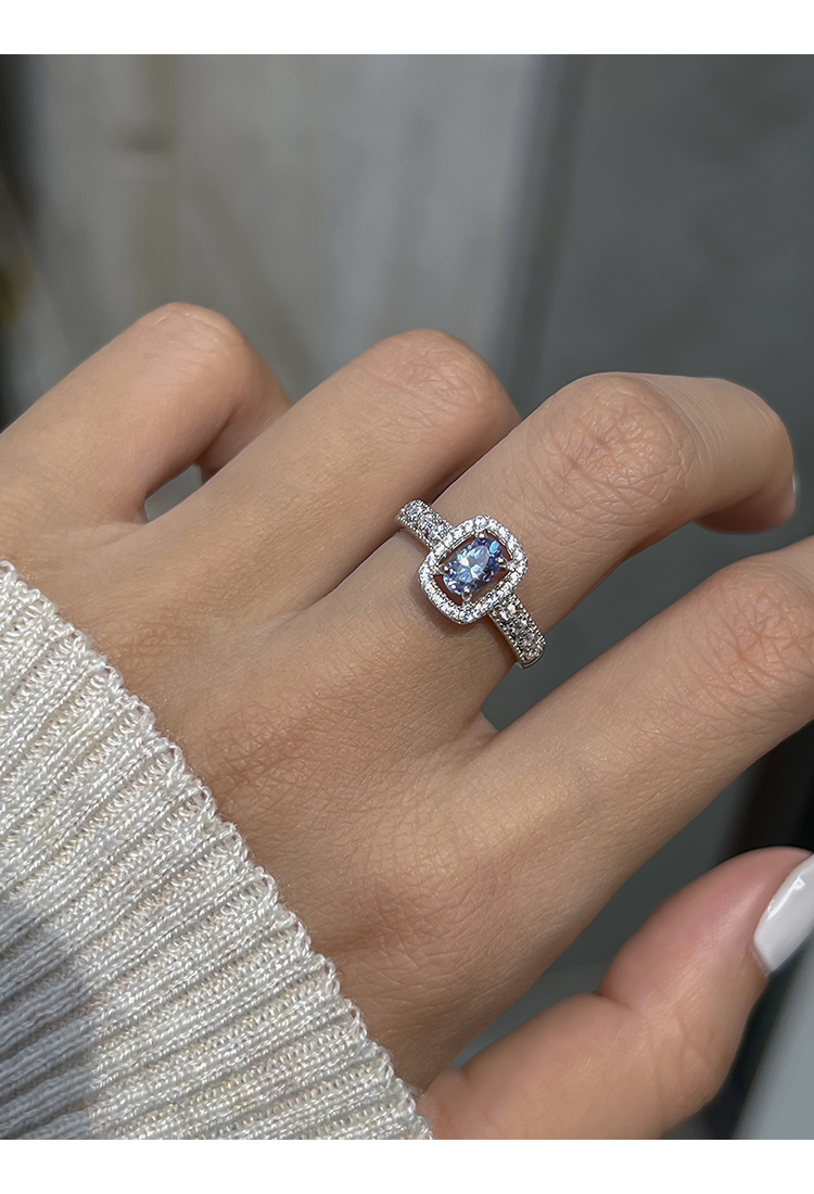 方糖家 純銀方糖天然坦桑石開口戒指時尚精致高級感氣質食指戒女
