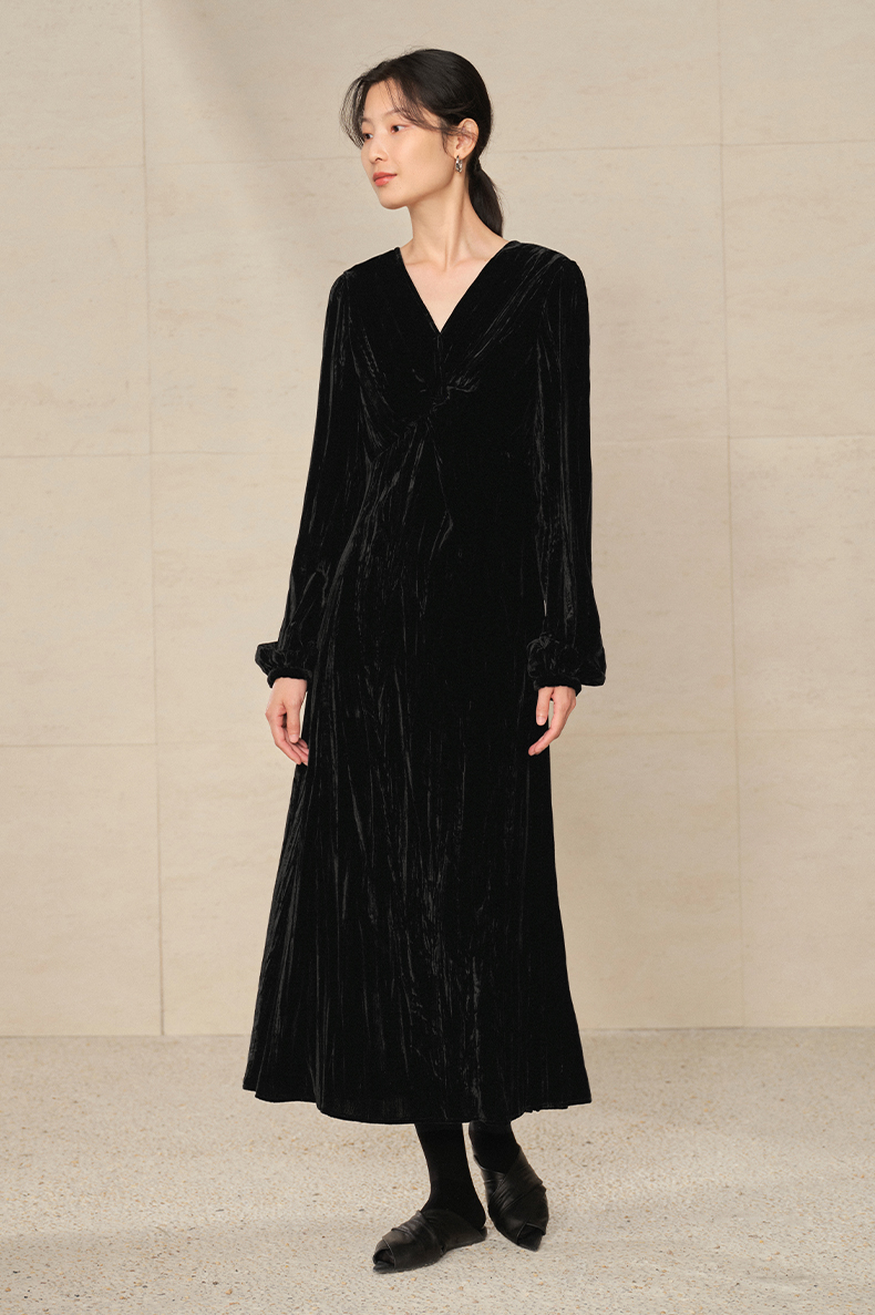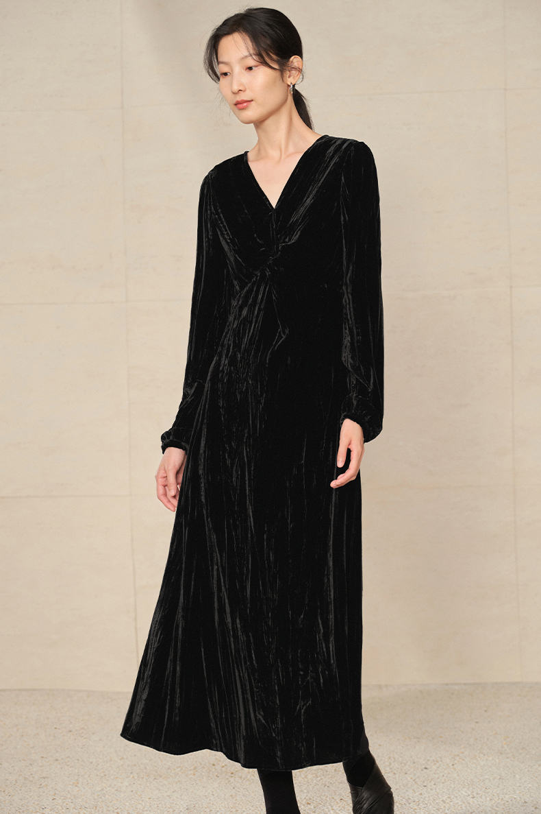 orange desire優雅絲絨長袖百搭連衣裙女2023秋冬新款顯瘦長裙