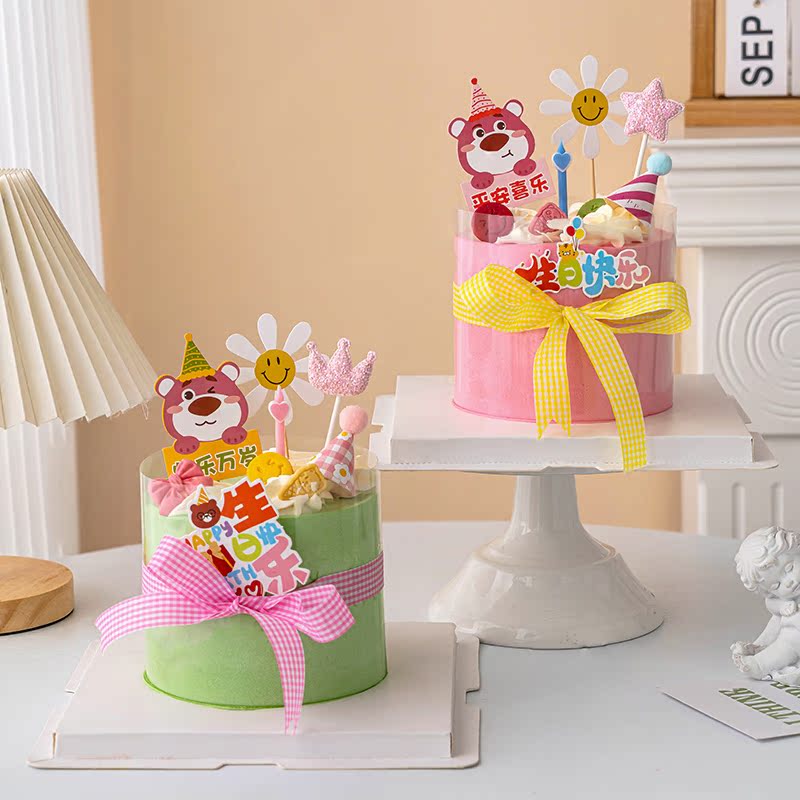 網紅ins風蛋糕裝飾草莓熊可愛插牌兒童周歲生日派對卡通小熊插件