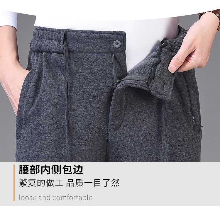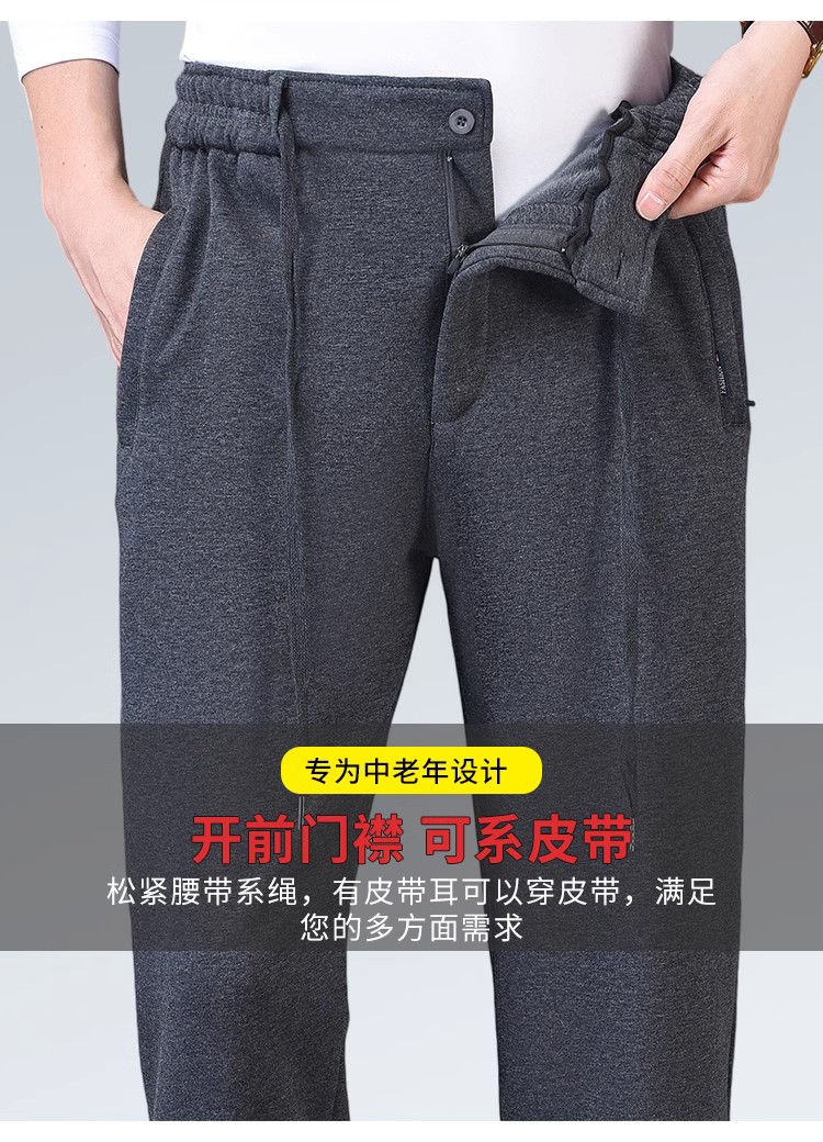 秋冬純棉運動褲男寬松中老年爸爸加絨褲門禁開口拉鏈大碼休閑長褲