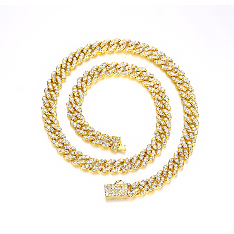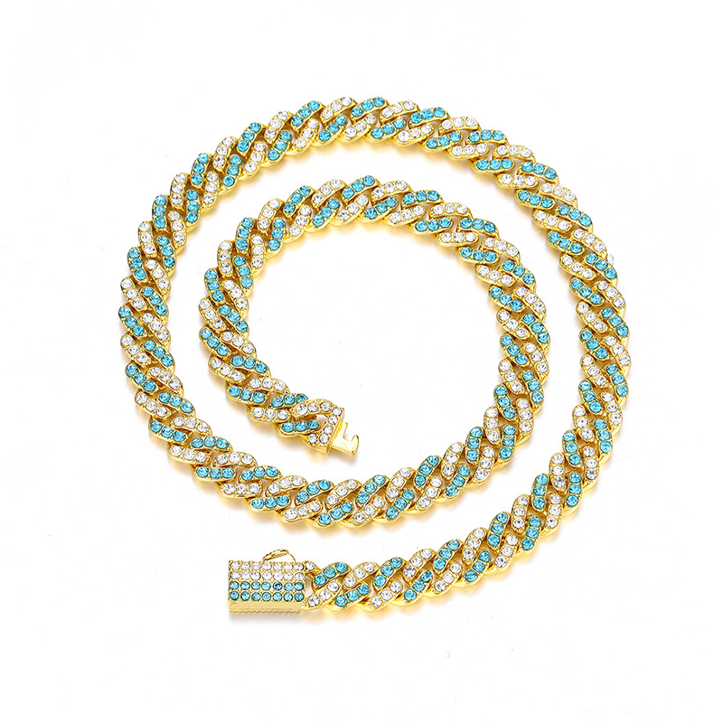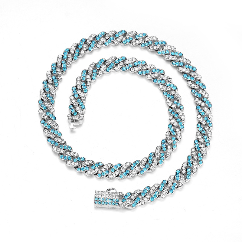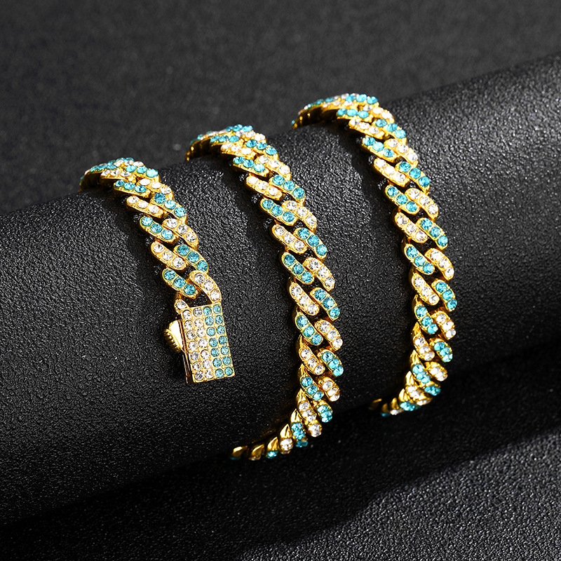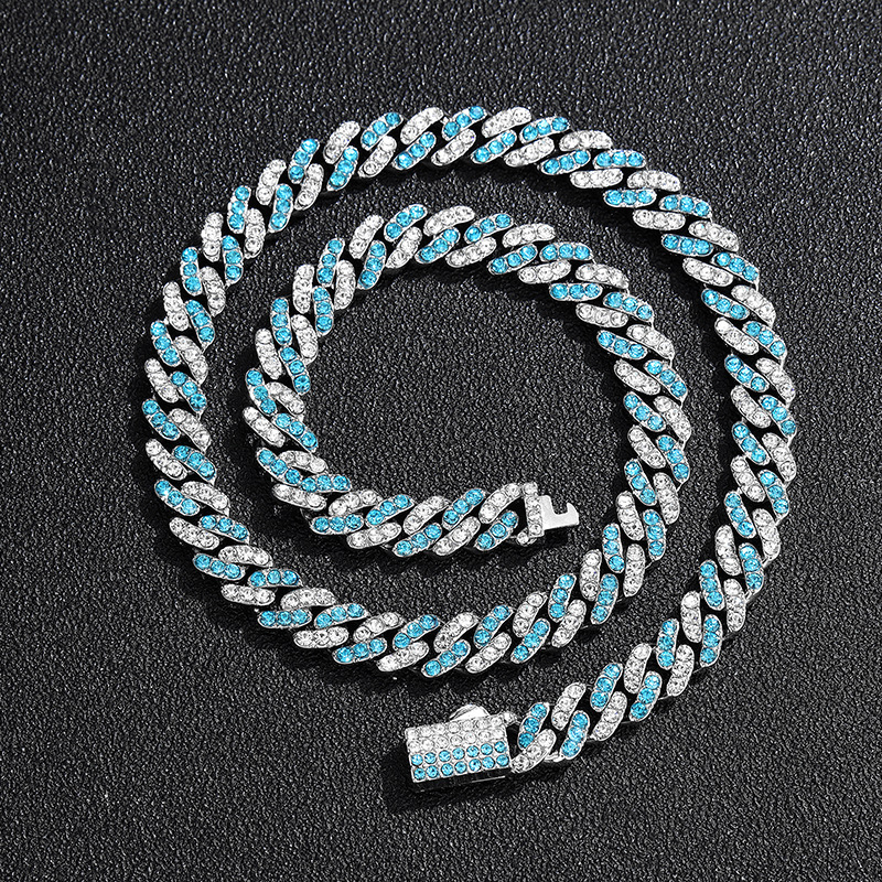 歐美潮牌朋克古巴鏈滿鉆男士個性百搭雙色9mm水鉆嘻哈女百搭項鏈