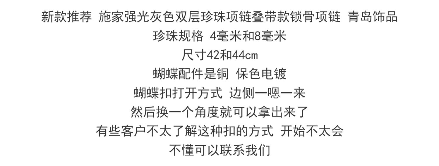 新款推薦 施華洛強光灰色雙層珍珠項鏈疊帶款鎖骨項鏈 青島飾品