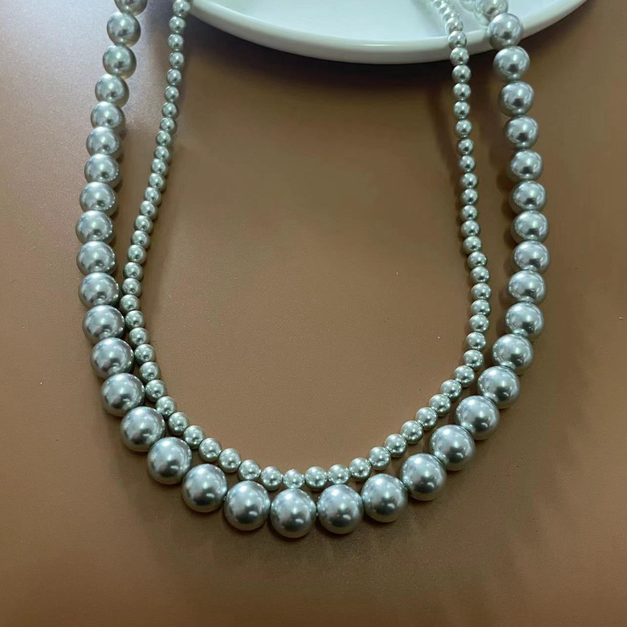 新品施華洛4mm灰色珍珠項鏈女秋冬百搭毛衣鏈多層項鏈青島飾品