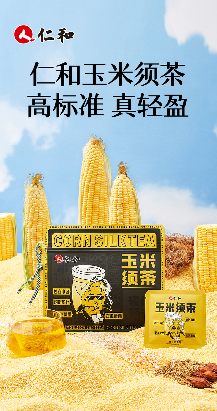 仁和玉米須茶官方正品玉米須茶梔子苦蕎胚芽泡水熬夜利水養生茶包